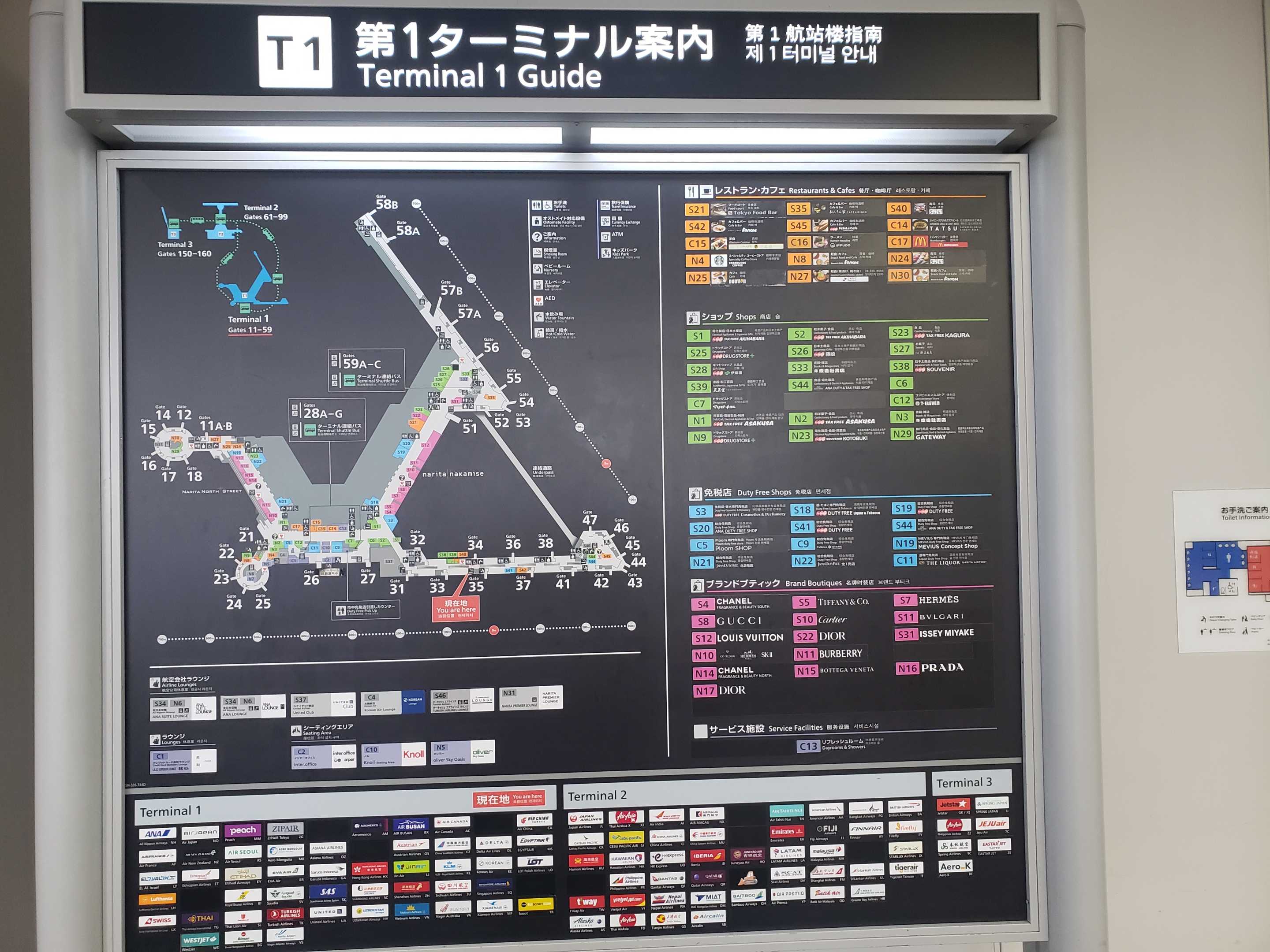 成田空港で初前泊、空港内を探検して、ようやく全体像が見えた、第一ターミナルだけ、だけどねここから世界に繋がっているんだね、感慨深いな