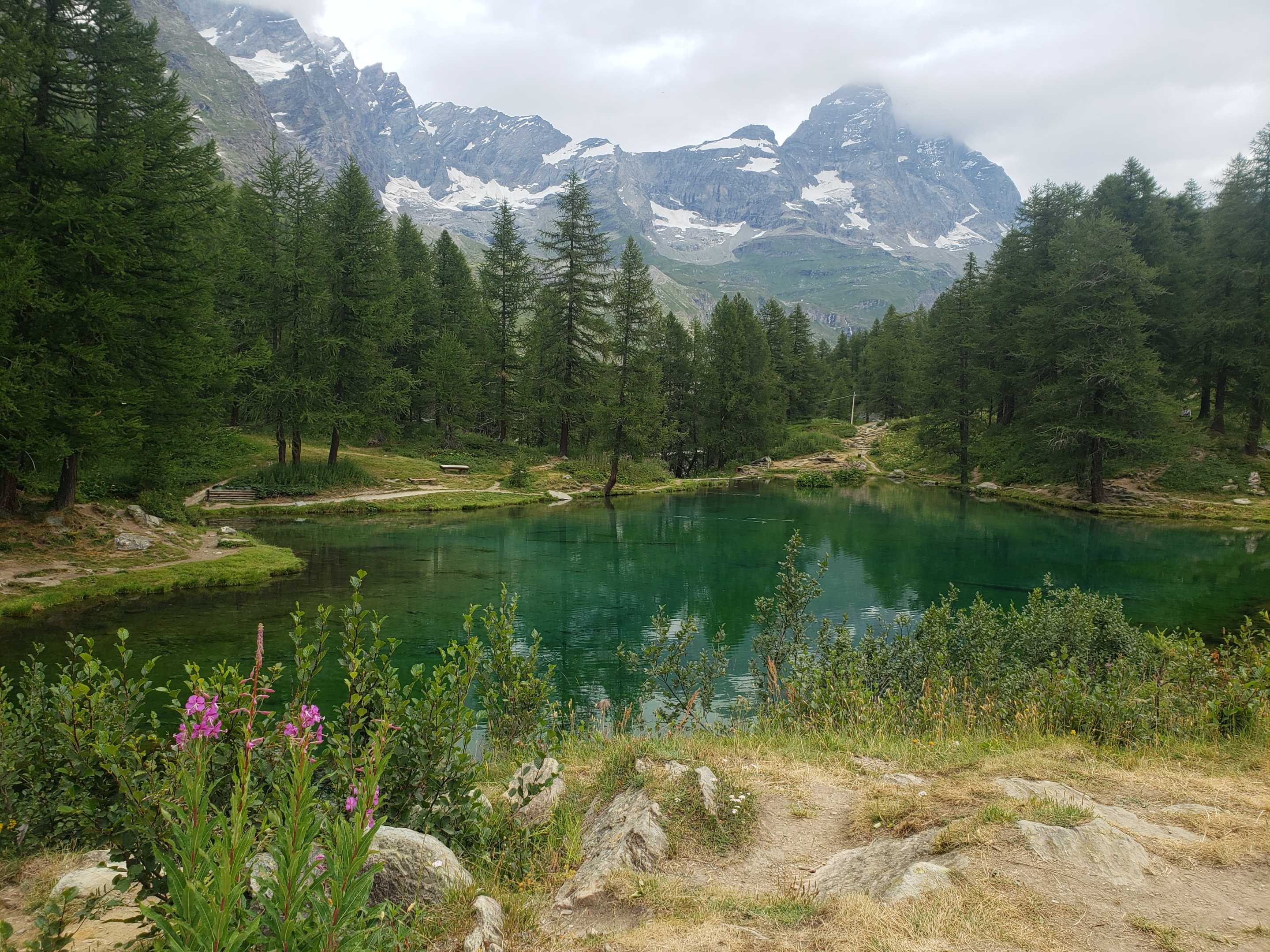 ブルー湖から見た、チェルビーノ、イタリア側からのマッターホルン、あと少しで、頂上が、、、見えず、ま、十分かと
