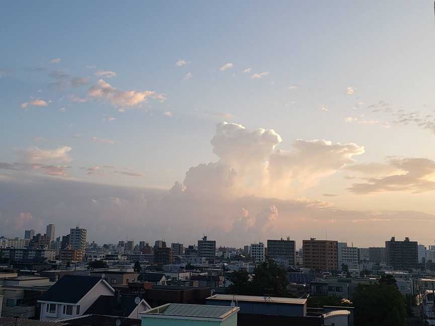 朝、念のために北の空を確認すると、増毛から留萌方面にカナトコ雲が出ていたで、チャリ出勤だが、なんと小樽方面に積乱雲が発達していて、こちらに向かっているいつもより、30分早く家を出た、職場に着いて一時間もしないうちに雷と土砂降りの雨になった手稲山には記録的な雨が降ったらしい、今日は、甲子園の準決勝だった、左手の指がない県立岐阜商業の横山君の夏は終わった負けたけど、誰もが彼を称賛し、素晴らしい夏だったに違いない、終わりではないこれからの人生の素晴らしい礎になる経験だろう負けではない、挑戦し、ここまで達成したことで、勝っている今朝、積乱雲に挑戦した私、、、ちっちゃい奴
