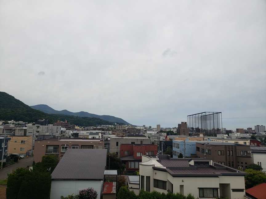 朝は、薄曇りで始まったが、今日の天気はアヤシイ、日中やっぱり雨になった帰宅後、夕方に、藻岩山の上に虹が出た水曜日、水の日だな