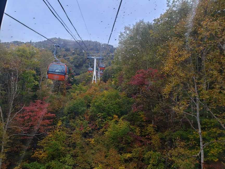 札幌国際スキー場の紅葉、7分ほどと言うが、曇りの天気もあって、イマイチ頂上付近は雲の中、五里霧中、気温4度、なにも見えず、寒いし、すぐに降りることにするま、紅葉ドライブ、、、には、違いないこれにて、3連休のシメ