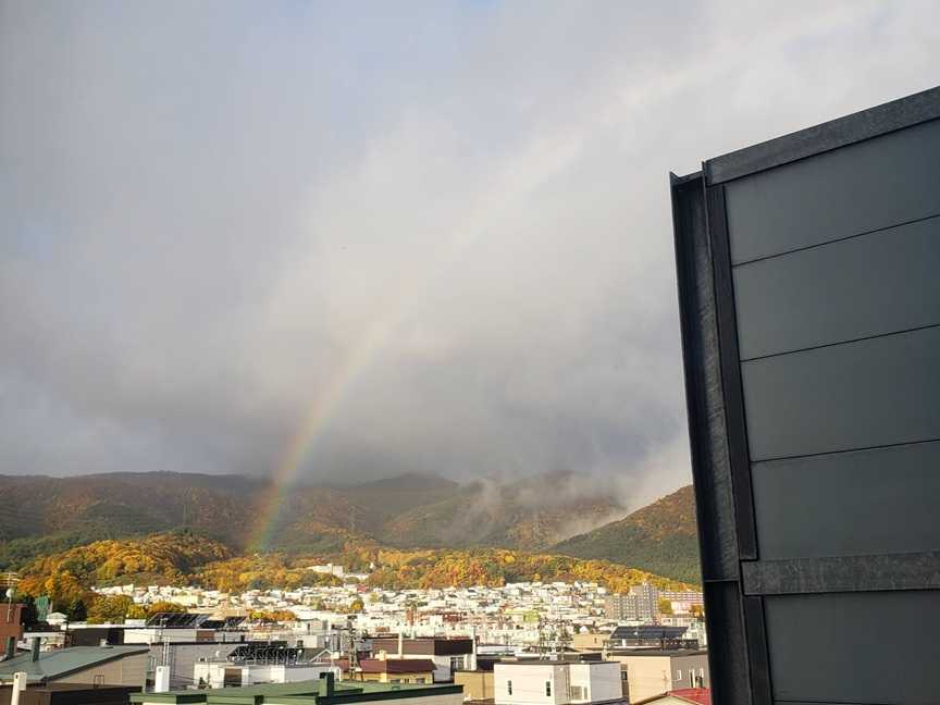 朝は晴れたけど、雨になり、また晴れて、虹がでたお見事、あの虹の付け根には、宝が埋まっているんだと、と聞いた今は、その場所は反射の位置で変わるから、信じていないけど大人になると、ユメを失うねともあれ、そんな月曜日
