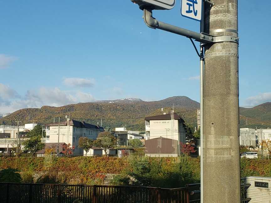 朝、出勤のバスからの景色、手稲山山頂が白くなっていた来たね、初冠雪、いよいよ冬だ今年の冬はとりわけ、、、早く過ぎてほしい気分