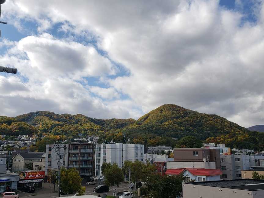 もう円山公園の3分の一くらいまで食い込んで、朝日でも、足場が取れてきて、景色がいいね紅葉だ、