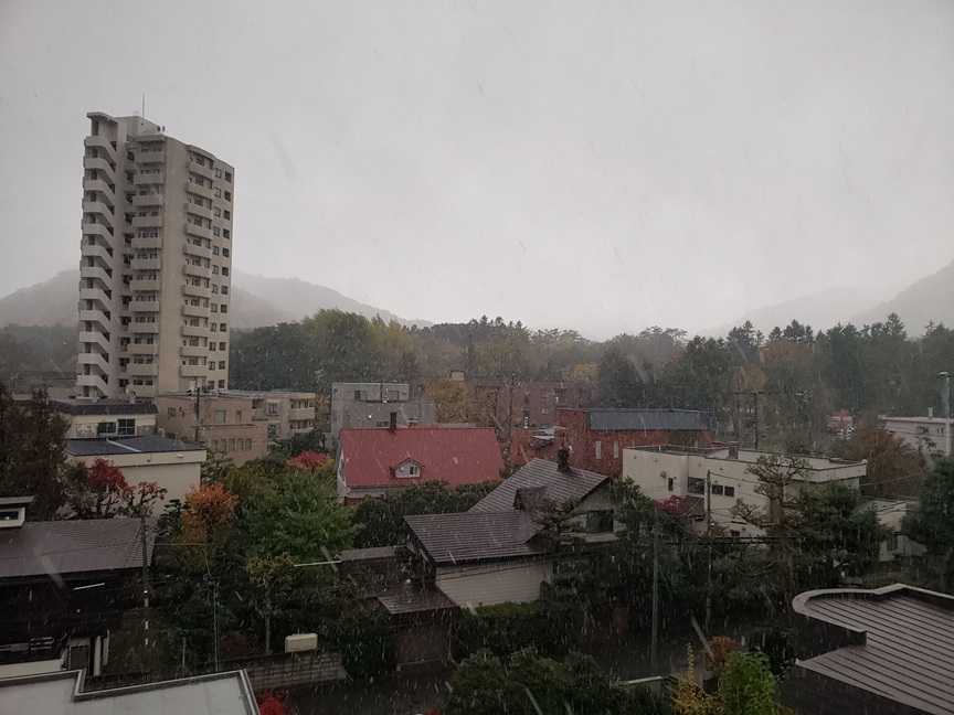 雨の朝になった、かろうじて見える藻岩山は昨日、初雪が降ったのだといよいよ、来たか、冬将軍、明日のワールドシリーズで温まることにしよう