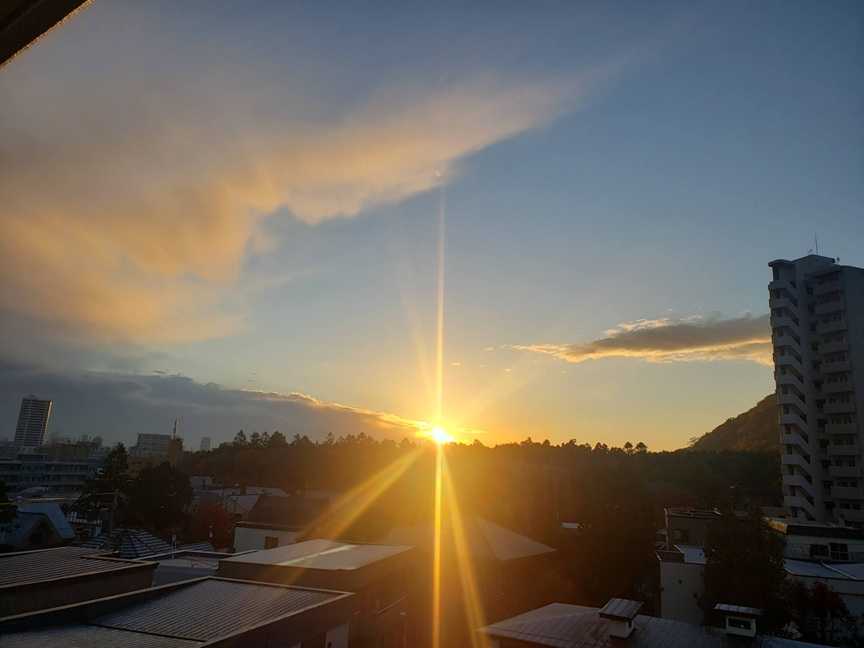 工事の向こうから昇る朝日は、どんどん円山公園の中に入ってくる朝のバス停の向こう、雲の中に朝日がのぞく、これから太陽がどんどん低くなり、暗くなる今は、寒くなった、暗くなってきただけど、来年の3月ころには、ようやく朝日で明るくなってきた、と思うことだろうそんな当たり前の日々の季節を感じた日常を過ごしている今日、なんと、坂口先生にノーベル医学賞と、ニュースが入ったその昔、その若き坂口先生とスタンフォード大学で、会話したことがある、彼曰く「実は、サプレッサーT細胞、ってあるんだよ」凡人の私、「サプレッサーT細胞、って実はキラーT細胞の一部って話になってるんじゃないの」って言ったら、、、フフフ、って感じだった、それが今、ノーベル賞だ、素晴らしいね私は、日々、冬が過ぎることだけを考えて過ごすことにする