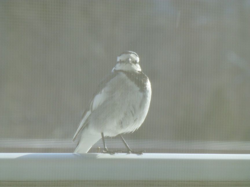 帰宅後、マンションのベランダにセキレイがやってきた、カメラを構えると、網戸越しに目があった。今日は、私を遊んでくれたのは、これくらいか。