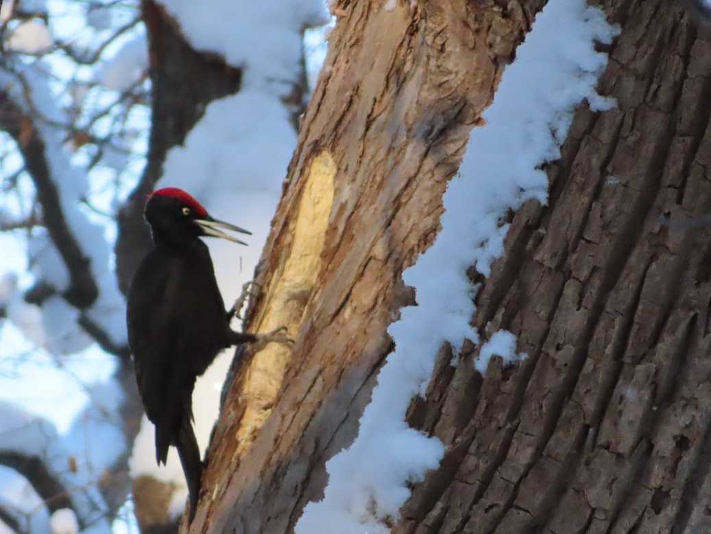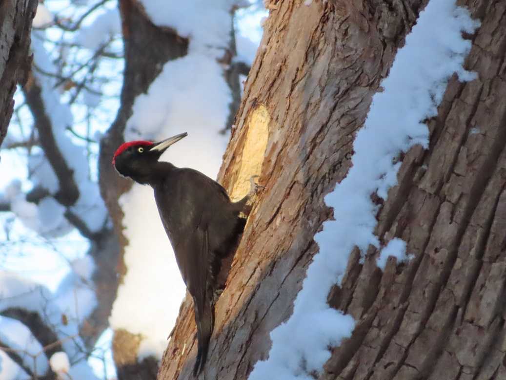 登るときにも見かけたクマゲラがまだ穴掘りに夢中だった。