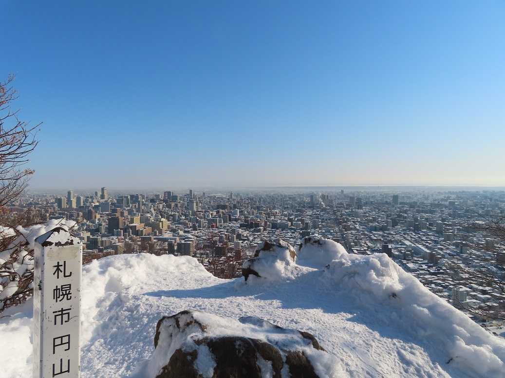 青空の円山。しかし、朝は夕張岳のシルエットが見えたのに、ここからは遠くが曇って見えず。