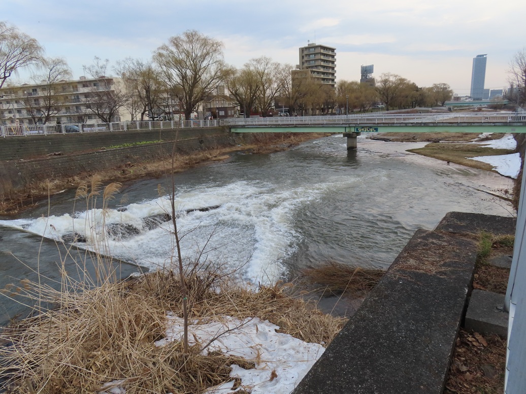 昨日よりも、さらに水かさがました発寒川、