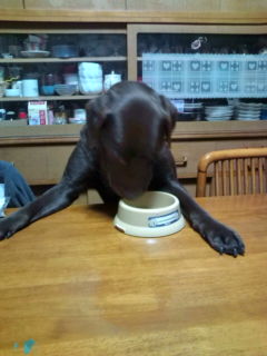 テーブルの上のニャンのご飯をまさに食べ終わる瞬間だっつた