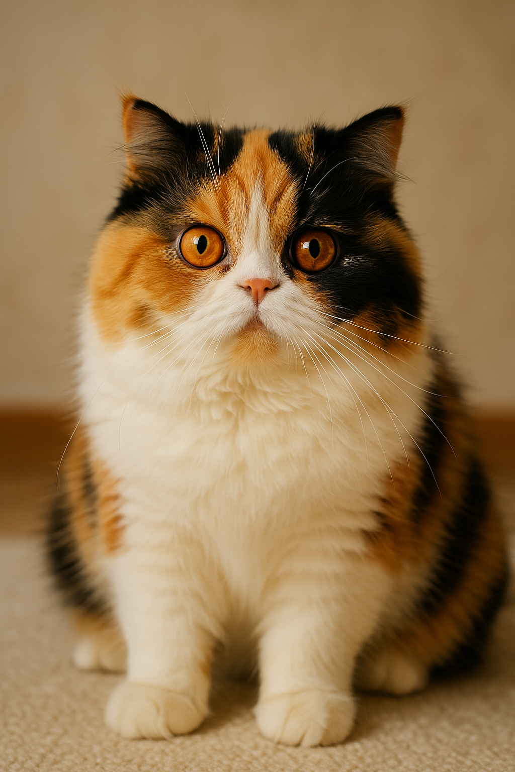 ChatGPTで画像を生成してみた。。。そのままだと3.5だと後で気が付いたなかなかかわいいのですが、ペルシャ猫と指定はしてたけど少し毛が短いカラーはキャリコを指定色合いはまずまずです^^