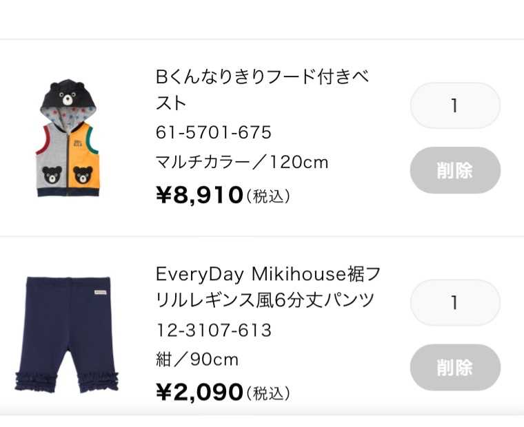 またまたオンラインファミリーセールで家族の協力を得て駆け込みポチして貰いましたー😂 オンラインファミリーセールに家族総出してしまいましたよ😂💸💸💸 購入品はこちらです☺️ 合計11,000円からのクーポン使用で5,500円😊 ミキハウス ダブルビー mikihouse なりきりフードつきベスト(120cm) キッズ 子供服 こども 子供 女の子 男の子 co202102-e 【メール便OK】【Everyday MIKIHOUSE エブリデイミキハウス】裾フリル♪レギンス風6分丈パンツ(70cm-120cm) 長男のなりきりベストは、黒を購入しようと思っていたのですがマルチも可愛く見えてきてマルチにしてみました😆♬ あと、こちらです🤗 合計11,110円からのクーポン使用で5,610円でした😄 ミキハウス ダブルビー mikihouse なりきりフードつきベスト(100cm・110cm) キッズ 子供服 こども 子供 女の子 男の子 co202102-e 【メール便OK】【MIKIHOUSE ミキハウス】うさこ♪ドッドレギンス(80cm-130cm) なりきりベストは小さめと聞きましたので2サイズ上を購入してみました✨😄 お揃いが増えて届くのが楽しみです✨😍