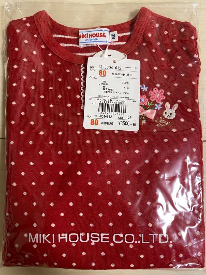 赤ドットのうさこちゃんチュニックは可愛いので同じものの90を先買い済みで寝かせているのですが、早く着られるということですぐに着せたいと思います😄