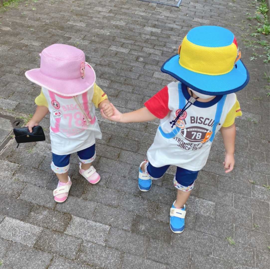 後ろ姿可愛いすぎます✨😍(長男の帽子の被り方がヘンだけど笑)