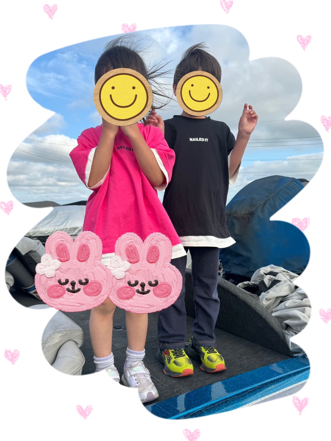 次女の履いてるレインブーツとパーカーとTシャツは長男のお下がりです😊(ほぼお下がり)