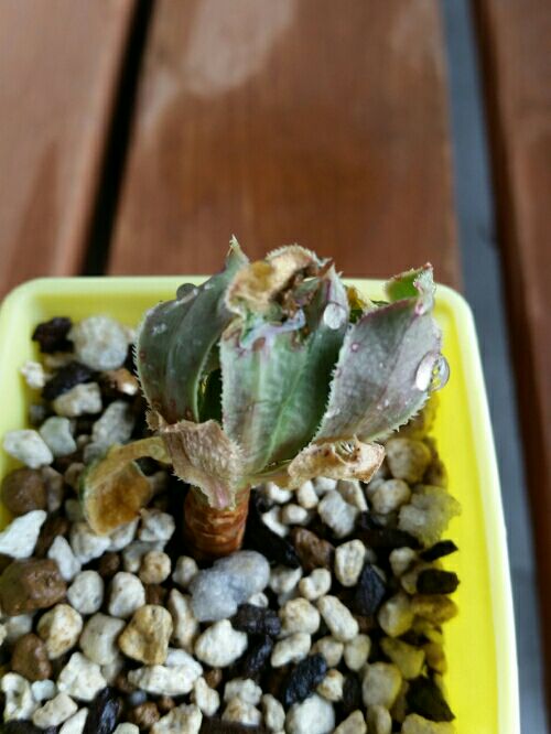 冬、アロエは水を吸わないのか、水をやっても全くシャキッとしない。 室内管理しているにも関わらずだ。 室内は寒い日の早朝でも12℃ぐらいはあるのだが、これぐらいの温度ではでは休眠してしまうのだろうか。 パキポ等は水をやると翌日にはパンパンになるのだがコイツらは変化しない。 やっても吸わないなら断水だ、ということで、もう1ヶ月以上水やりしていないアロエ。 さて、どうなっているだろうか。 クロウジアナ。 トゲが赤いのはいいのだが、 葉も赤いぞ! 11月ぐらいまで外に置いていて、葉が赤くなってきたので室内に取り込んだ。 しかし葉はミドリには戻らず、最近更に赤くなってきた。 アロエは丈夫だし室内管理だから問題ないとは思うが、初の冬越しで少しビビっている。 現在断水中。 最後に水やったのは今年の始めごろ。 3月いっぱい断水かなあ。 今のところ水不足という感じはしない。 一方ディコトマ。 肉厚だった葉がだんだんペラペラになって内側に丸まっていく。 実はこの現象、9月ぐらいからなのだ。 水をやっても吸わないのか、全然ふくらまない。 夏型とはいえ9月から休眠するか? とりあえず今は断水中だ。 コイツも3月いっぱい断水かな。 う~ん。 アロエ難しいな。 本にはスゴく育てやすいと書いてあるんだけどな。 とりあえず水のやり過ぎに気を付けて室内窓際で様子を見るとしよう。 春になったらなんとかなるだろう………と思う。 にほんブログ村