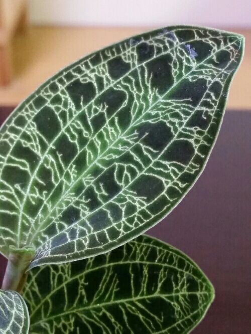 昨日は天気が良かったので、ドライブがてら練馬の大型園芸店まで行った。 東急本店の屋上に出店している店の本店で、一度行ってみたかったのだ。 3号で3千数百円という高級な鉢が置いてあったりもするが、手頃な価格のものも多数、幅広い品揃えだ。 多肉と観葉植物、鉢等をメインに見るのだが、他も一応ひと通りは見て回る。 そして、普段あまりよく見ないランのコーナーに居たのがコイツ。 ベルベットのような質感の濃いグリーンの葉に浮かぶ葉脈が金色。 何だこれ!? ラメ糸で刺繍したみたいだ。 メタリック。 光ってるぞ。 こんな植物があるとは。 スゴいな、この模様。 ミズゴケに植えてある。 2号ぐらいの大きさ。 とりあえず鉢カバーにすっぽり入れている。 この光る葉の模様からジュエルオーキッドと呼ばれているようだが、正式名はマコデス.ペトラというらしい。 小さい白い花が咲くそうだが、むしろ葉を観賞するランだそう。 中心からは新しい葉が出てきつつある。 ランは初めてだ。 とりあえず、育て方を調べてみるか。 にほんブログ村