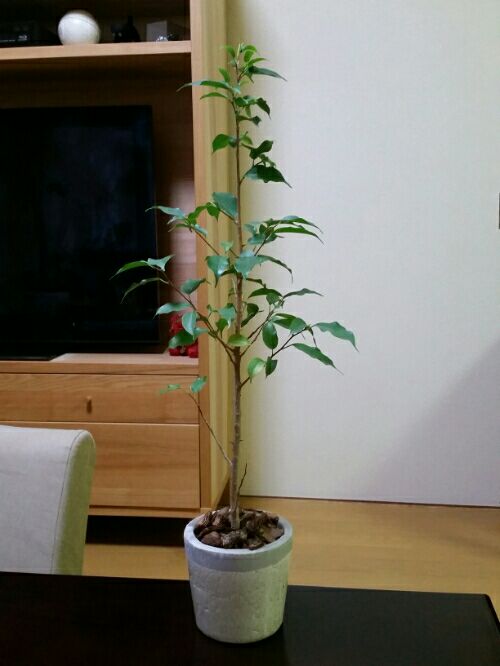 フィカスアルテシマ。 無○良品で購入したのは2013年の8月末。 ピンと上を向いた艶のある葉がなかなかイイ。 しかし冬になると葉を落とし、翌年6月。 葉が少ない。減ったのだ。 7月になってようやく葉を出し9月。 葉が増えた。 昨年3月。 1枚黄色くなっているが全体的に良好。 去年は無事に冬を越した。 生長が始まったのは7月末。 前年もそうだった。 何でこんなに遅いんだろう。 根詰まりか? よし植え替えよう。 8月15日植え替え。 6号鉢から7号鉢に昇格だ。 しかしその後はピタリと生長が止まる。 10月10日。 まあイイ感じ。 1月22日。 あれあれ? 3月9日。 なんだか葉が枯れていくぞ。 3月25日。 まだ枯れそうだ。 今日。 葉はとうとう6枚になった。 何でだ!? 9月末ぐらいから室内に移動し、窓際で陽に当てていたし、冬の夜は室内奥へ。 室内は真冬でも10℃ぐらいある。 ひょっとして鉢がデカ過ぎたのか? 鉢がデカ過ぎてなかなか乾かず、根がずっと濡れたままで腐ってしまったのか? 根が伸びるようにと一回り大きな鉢に植えたが、これだけしか葉がなければ、こんなにデカイ鉢はかえって迷惑なのかもしれない。 5月にまた植え替えるか。 6号に戻そう。 とりあえず、それまでは何とかしのがねば。 耐えてくれよ、アルテシマ。 あとは暖かくなる一方なんだから。 にほんブログ村