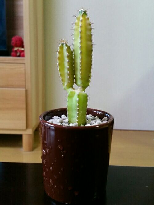 フォーカリア怒涛。 いや怒涛じゃないかもしれない。 ダ○ソー出身。 名無しだったからだ。 これが購入時。 2014年11月9日なので1年5ヶ月経過したことになる。 このときはツルんとした表面でキバもなく、怒涛じゃないフォーカリアの何かだと思っていた。 翌年1月25日。 ツルツルだったのに、新しく出た葉はブツブツがありキバもある。 8月14日。 全部ブツブツのキバキバになった。 12月28日。 やや茶色くなったが、仔吹きが始まった。 現在。 茶色くなった下葉は赤くなり、仔株は育ってきた。3頭体制になりそうだ。 う~ん、こうやってみるとなかなか渋いな。 ミニ盆栽鉢にでも植えてみようかな。 この赤くなった下葉もイイ。 なかなか狂暴な顔つきになってきたぞ。 買った時とえらい違いだ。 フォーカリア怒涛。 ベランダ最前列で管理。 冬型なので夏はベランダ奥に移動するが、通年ベランダ。 水は今、週イチ。 これ、群生になっていくのかな。 ブツブツのキバキバがウジャウジャになったらいいなあ。 ワケわかんない姿に育って欲しいね。 にほんブログ村