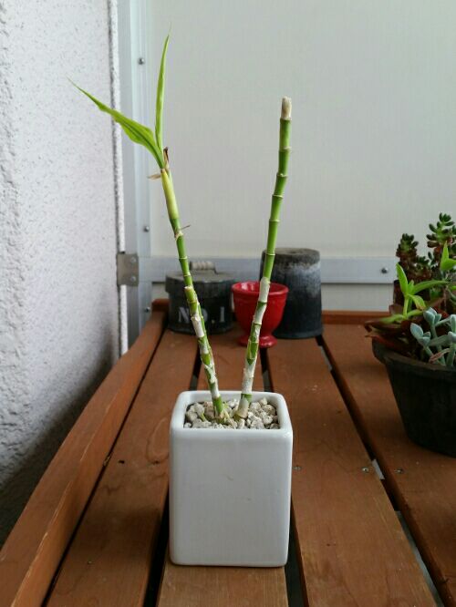 竹みたいなコイツ。 竹じゃない。 ドラセナ、サンデリアナだ。 元々はこんな感じ。 青々とした葉を繁らせていたのだが、ベランダの隅でほったらかしにし、冬も部屋に入れてやらなかったら、こうなった。 う~ん。 さすがに観葉植物を外で越冬は無理だったか。 葉っぱ真っ白。 もうダメかな。 とりあえず枯れた葉っぱを取り除こう。 葉っぱを取り除くと緑色の茎が現れたぞ。 これはまだ大丈夫じゃないの? しかし長げえな。 ちょっと切っちゃうか。 一番長い茎を少しだけ切ったぞ。 葉は真っ白になっていたが、茎は生きてるな。 よし植え替えよう。 イイじゃんイイじゃん。 さあこれで準備万端。 あとは新芽が出てくるのを待つだけだ。 というのがこれまでの経緯。 そして現在。 芽が出てきたぞ。 地面からも。 復活の気配濃厚だ。 冬にベランダ出しっぱにしたにもかかわらず復活の気配を見せるサンデリアナ。 ものすごい剛健種なのかもしれないな。 さあこれからどんな生長を見せてくれるか。 楽しみに見守ろう。 にほんブログ村