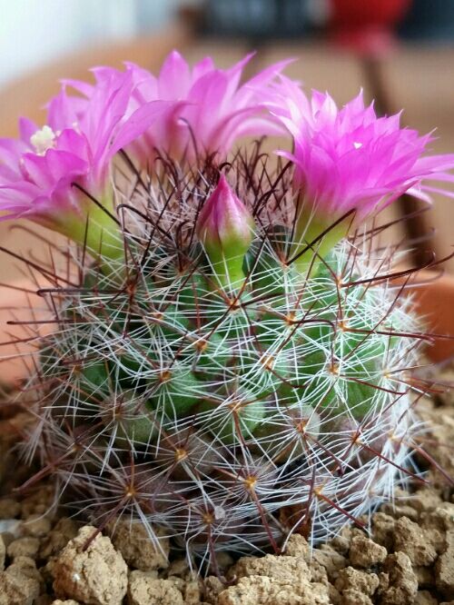 月影丸。 と勝手に呼んでいるが、本当に月影丸なのかは分からない。 ダ○ソー出身で名無しだったのだ。 コイツ買ったとき既に花が咲き、つぼみも沢山付いていた。 100円なのに花まで付いているとは。 すごいお得だ。 と思ったことを覚えている。 咲いているのは4輪 つぼみが1つ。 4輪のうち3輪は全開、1輪は半開だ。 日照ゼロだというのに、よくぞ咲かせてくれた。 ほめてやるぞ。 コイツ、花を咲かせているが、2号鉢の小さいヤツだ。 直径6cmの鉢の半分ぐらいだから球体は直径3cmぐらいか。 こんなに小さいのに花を咲かせるんだな。 ということはこの大きさで既に大人? これ以上大きくならないのだろうか? まあいい。 うちにあるサボテンで花を咲かせるのはコイツだけ。 貴重な存在だ。 日照ゼロは秋まで続く。 コイツも水やり控えめにして、夏を何とか乗り越えよう。 にほんブログ村