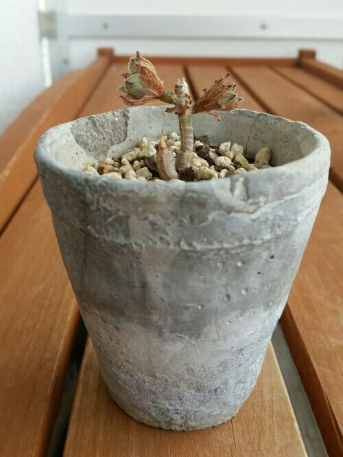 先週木曜に抜いて陰干ししていたアエオニウムを植えたぞ。 全て今までの鉢とは違う鉢に植えた。 同じ鉢では画像を見てもいつ植え替えたか分からなくなるからだ。 早速見てみよう。 カナリエンシス。 3鉢あったのをシリンダー型のテラコッタ?鉢にまとめた。 2.5号ぐらい。 これでダ○ソープラ鉢が2個減ったぞ。 よしよし。 奥の2本は挿し木だったもの。 コイツらは調子良さそうだが手前の親は下葉が枯れ小さくなってしまった。 これから生長期。 復活してほしいものだ。 レモネード。 テラコッタから2.5号シリンダージャンクポットに植え替えた。 赤茶もあっていたが、黒い鉢も合う。 植え替えの際土埃が付いて葉は実は汚い。 夕映え。 2号テラコッタから同サイズ2号の素焼き。 紺色にペイントした鉢なのだが雑だね。 塗り漏れ箇所がある。 でもまあ、これも味ということで…。 黒法師。 同じ鉢の色違い、ジャンクポットの黒からライトグレーに植え替え。 サイズは変わらず2号。 ロゼットが平たくなりカッコ悪いがそろそろ生長開始する時期、いずれ立体的になるだろう。 カシミアバイオレット。 これが黒法師が植わっていた2号ジャンクポットの黒い方。 テラコッタから植え替えた。 愛染錦。 テラコッタから2号セメント?鉢に植え替え。 かなりボロボロの状態。 植え替えを機に回復してくれるといいのだが。 折れた枝の先端部も挿しておいた。 小人の祭。 コイツはゴミみたいになっていたので余っていたプラ鉢。 2号ぐらいか。 根が全然張っていなかったのだが、素焼きだったため乾きすぎだったのかもしれない。 以上アエオ7種を植え替えた。 水やりは少し日にちをあけてから行う。 1週間後ぐらいでいいかな。 準備は整った。 思う存分生長してくれ。 冬にはまた美しい姿を見せてくれよ。 にほんブログ村