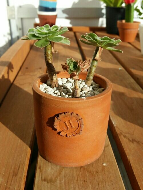 去年はお盆を過ぎたら一気に涼しくなり秋の気配を感じたものだが、今年は9月に入っても暑い。 猛暑になると言われていたが、なるほど夏が長い。 そんな残暑のなか、冬型のアエオニウムは大丈夫だろうか? 様子を見てみよう。 カナリエンシス。 う~ん。 ショボいな。 ゴミみたいだ。 下葉が枯れてしまっている。 しかし中をのぞき込むと、 どうやら生きてはいるようだ。 生長再開すれば問題なく復活しそうだ。 小人の祭。 コイツも夏はショボい。 去年もこんな感じだった。 去年の8月。 あっ! 全然変わっていない。 1ミリも生長していないんじゃないのか? なんてヤツだ! 少しは生長しろよ! ゴミもいっぱい付いて全然カワイクないぞ! これもショボいな。 愛染錦。 枯れ葉がたくさん落ちている。 知らない間に折れた枝もあるし…。 しょぼーん。 レモネード。 下葉枯れ枯れ。 チョー枯れ枯れ。 レモネードの葉は粘着質。 小人の祭と同じだ。 この葉、枯れてもカサカサのパリパリにならないのだ。 みっともないので取ろうと思っても取れない。 まあ夏は仕方ないかな。 冬型だし、夏は弱いのだろう。 秋には生長再開するだろう。 ショボい姿ももう少しで見納めだ。 冬にはまたキレイな姿を見せてくれよ。 にほんブログ村