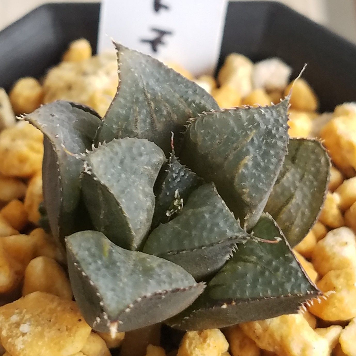 2月の極寒の時期を過ぎたとたん急に春っぽくなった。 ダウンや厚手のウールコートから薄手のコートに切り替え、最近などは昼間晴れればコートは脱いでも寒くないぐらいだ。 ハオルシアも春を感じているらしく少し前から成長の兆しがあちこちで見られる。 黒くてカリカリに乾燥したヤツらが急にミドリになりふっくらみずみずしくなったりしているのである。 シュルドチアナ、テッセラータTH-B、コリアセア等々目覚めたヤツらはいっぱいいる。 鬼瓦もそのひとつ。 うちには2匹の鬼瓦がいる。 今日はコイツらを観察してみよう。 鬼瓦1号は購入時このような姿だった。 内部の水分がかなり少なくなっているようで葉は痩せ内側に巻いている。 決していい状態ではない。 この状態がつい最近まで続いていたのだが、現在。 巻いていた葉は開き少し厚みが増した。 葉の内部に水分が取り込まれたのだ。 コイツ、最初から黒かったがいまだに黒い。 1月から終日室内管理にしているのだが黒いまま。 陽に当てると黒くなるハオルシアは多いが室内に入れるとたいていは緑になる。 コイツは本来の色がこういう黒っぽい色だということか。 ただ、 成長点から出てきた新葉は緑。 唯一この部分だけが緑。 外側はすでに黒いからいずれ真っ黒になるのかもしれないが。 鬼瓦2号は購入時このような姿。 そしてこれが現在。 1号同様閉じていた葉が開いている。 痩せていた葉に厚みが出たのだ。 水を吸っている証拠。 根が正常に機能しているわけだ。 昼間は外の半日陰に出しているからか色は黒くなった。 正確には黒というより赤みがかった黒。 錆び鉄のような色だ。 鬼瓦1号。 終日室内。 鬼瓦2号。 昼はベランダ半日陰夜は室内。 水はともに2週に1回たっぷり。 このいかつい面構え。 鋼鉄のヨロイのような質感。 いいなあ鬼瓦。 あと2、3個は欲しいところだ。 にほんブログ村 多肉植物:ハオルチア 鬼瓦*幅7cm 多肉植物:ハオルチア 鬼瓦*幅8cm 現品!一品限り 多肉植物:ハオルチア 鬼瓦*幅10cm 現品!一品限り niハオルチア ピグマエア×コエル NGM-4(0906多肉植物 ハオルチア 7.5cmポット) ハオルチア属/ハオルチア/コエル/2.5寸鉢/サボテン/多肉植物/希少【送料無料】 ※ハオルチア