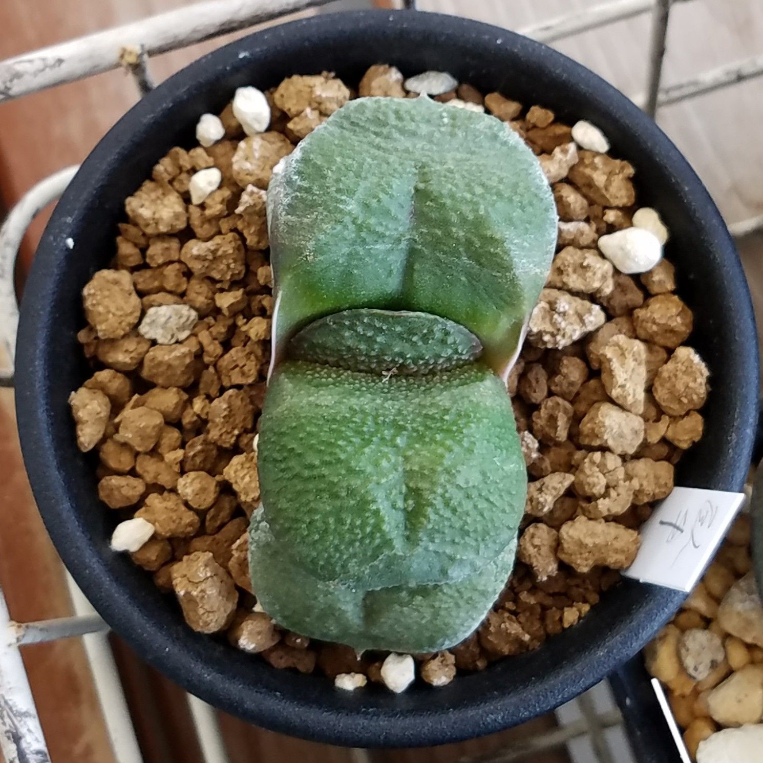 リトープス脱皮の季節。 この時期になるとリトープスの記事が多くなる。 前回記事にしたのは2月14日。 この時点でまだ脱皮が始まっていなかったのは4つ。 メノウ玉、アクアマリーン、ピータースブルグ2号、紫勲玉。 コイツら脱皮開始しただろうか? 順番に見ていこう。 まずは脱皮が完了している極小の緑福来玉。 1cmほどしかないコイツ。 全然デカくならない。 異常脱皮したからか脱皮前より小さくなった。 顔色も冴えないような気がする。 大丈夫か? 麗虹玉。 4個生き残っている麗虹玉は順調に進行中。 左上のヤツは根無しシワシワで到着したヤツだがようやく脱皮開始した。 あと2つも順調。 旧葉がパンパンなので水やり少な目に管理する。 白花黄紫勲。 旧葉の水分がいい具合に新葉へ移行しているように見える。 開いた口からのぞく新葉もよく育っているよう。 順調である。 ピータースブルグ1号。 ゆっくりと口が開いていっている。 旧葉にはまだ張りがある。 水やり少な目にしよう。 ボルキー。 分頭している様子がはっきり分かるようになってきた。 旧葉にはシワが寄り始めた。 水やり少な目にし水分を新葉へ移行させる。 さて、前回まだ脱皮が始まっていなかったメノウ玉はどうなっているかな? おお! 口が開いている。 脱皮開始だ。 花ガラが下方向に寄っているから分頭ではないようだ。 まだ小さいから当然か。 アクアマリーン。 コイツも前回はまだだったが、 始まった! しかももうこんなだ。 早ええ~。 さすがにこの時期になるとほぼ脱皮中になるが、この2つだけはまだだ。 ピータースブルグ2号。 紫勲玉。 ともに脱皮開始前だというのにシワシワ。 大丈夫か? ホントに脱皮できるのか? 心配だなあ。 にほんブログ村 asリトープス 緑福来玉(多肉植物 リトープス メセン 6cmポット) 瑪瑙玉 リトープス プセウドトルンカテラ ボルキー | 宝貴玉 女仙 メセン インテリア おしゃれ 人気 ギフト プレゼント 観葉植物 室内 リビング 飾り 祝い 誕生日 結婚 新生活 開店祝い 贈り物 オフィス 可愛い 珍しい 育てやすい インスタ オススメ 初心者 冬 多肉植物 多肉植物 リトープス大津絵7.5cmポット asリトープス サトーズバイオレット 紫李夫人(多肉植物 リトープス 6cmポット)