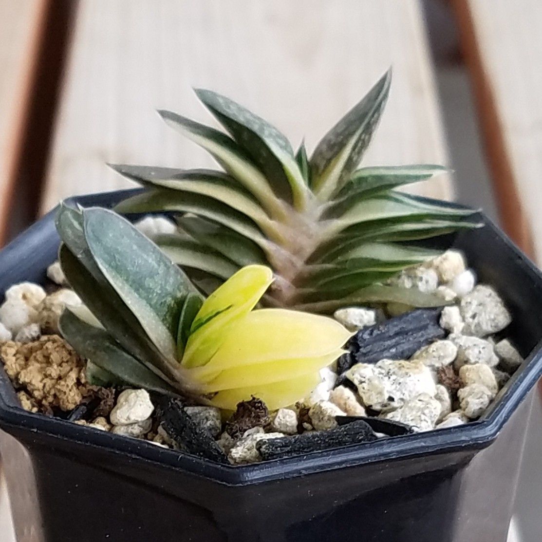4月なのに最高気温7℃。 突然冬に逆戻りしてしまったが、とはいえ日に日に暖かくはなっている。 春秋生育型多肉植物にとってはちょうどいい温度帯だ。 ハオルシアにとっても心地いい季節なのだろう。 プクプクにふくれているヤツらがいる。 ティンカーベル。 葉にたっぷり水分を蓄えはち切れそうなぐらいふくらんでいる。 プクプクでパンパン。 かわいいなあ。 特にコイツは小っちゃいので可愛さ倍増だ。 2号鉢。 ロゼット径4cm高さ2cmといったところか。 このぐらいのハオルシアもいいものだ。 コイツも小さい。 氷砂糖。 2号カクカク鉢。 上から見ると星形。 購入時はコレだから、 ずいぶん良くなったものだ。 ゴミと宝石ぐらい違う。 なかなかのプクプク具合。 特に中心部。 かなり白い葉が出てきているが上面が盛り上がりプクプクだ。 いいね、プクプク。 コイツもプクプク、雪景色。 葉の上面が盛り上がり調子良さそうだ。 模様もなかなか面白い。 小沢白銀も葉が盛り上がってきた。 根の調子が良いのだろう。 水を吸っているのだ。 側面と線模様は茶色、窓は明るい緑色。 独特の表情だね。 デカくなったら見応えあるだろうな。 竜鱗もムチムチしてきた。 新しい葉は幅広できれいな曲線を描いている。 将来有望ではないだろうか。 ちなみに買ったときはコレ。 ものすごい変わりようだ。 プクプクなヤツら。 全員終日室内。 水は2週に1回たっぷり。 成長期だから週イチでもいいような気がするが週イチだと多すぎる気もする。 特に成長を急ぐ必要はない。 2週に1回で健康そうだしこのペースを続けよう。 置き場はやはり終日室内の方がきれいに作れるようだ。 昼間は外に出しているハオルシアもいるが室内組の方が状態がいい。 ただ室内だと徒長するヤツもいるんだよね。 そういうヤツは外の半日陰がいいだろうしなかなか難しいね、ハオルシアの管理。 にほんブログ村 ハオルチア スプレンデンス 交配美種 雪景色 | 多肉植物 新生活 育てやすい インテリア おしゃれ 人気 ギフト プレゼント 観葉植物 自宅 室内 リビング 飾り 祝い 誕生日 結婚 美容院 開店祝い 贈り物 オフィス グリーン 可愛い 珍しい インスタ オススメ デスク 玄関 棚 niハオルチア 白銀永井(ピグマエア×白銀ピクタ)×ベルベット(特ケバ ピグ×白青城)実生苗 多肉植物 ハオルチア 7.5cm ハオルチア 氷砂糖 3号Haworthiaハオルシア 多肉植物 Succulent※他の植物との同梱可※日照・最低気温などで色味が変わります 新氷砂糖(シンコオリザトウ) ハオルチア属 【ジュエルプランツ】多肉植物 9cmポット ◇ハオルチア◇竜鱗◇2寸鉢◇ ハオルチア