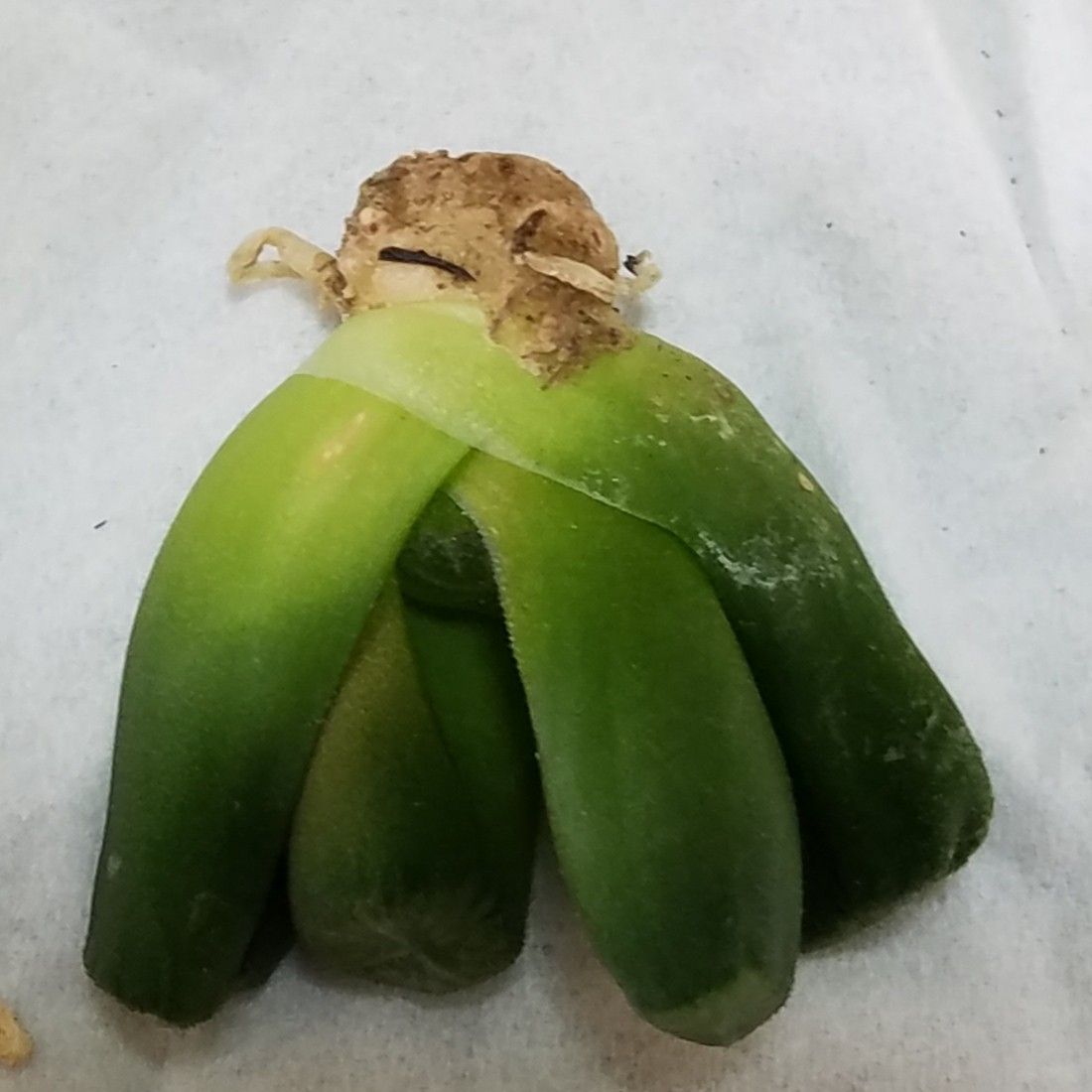 タマネギ野郎を植え替える。 このタイトル去年も使ったような気がする。 2019を入れとくか。 さてタマネギ野郎ことボウィエア・ヴォルビリス、蒼角殿。 冬にツルが枯れ現在はタマネギだけの状態。 そのタマネギも土に半分ぐらい埋まっている。 この時期は毎年こうだ。 土に潜りたがる性質なのだろうか。 しかも茶色い薄皮でおおわれ鑑賞価値は極めて低い。 これを植え替えて薄皮をむききれいなグリーンのタマネギを露出させて植えるのだ。 きれいなタマネギはツルがなくても見映えがする。 まずは抜いて根のチェックだ。 根はよく張っており白い根がいっぱいある。 土を落としチェック。 うむ。 問題なさそうだ。 薄皮をむいて植え込み。 タマネギがよく見えるように植えたぞ。 植え替え半日後に水やり。 まだ新ツルは出ていない。 早く出ないかな。 と思っていたら2日後の今朝。 出た! 2ヶ所から。 変なカタチになっていたから分球するのかもしれないなとは思っていたがやはりそうだったようだ。 分球。 2つに増えて嬉しいとも思えるし1個をデカく育てたかったとも思う。 複雑な気持ちだな。 分球は水やり過多で起こるんだよな確か。 今年は水やり少な目にするか。 月イチぐらいでいいかな? タマネギの様子を見ながら判断しよう。 にほんブログ村 os翡翠の輝き 蒼角殿(ソウカクデン)おもしろ多肉植物 sdボウィエア 蒼角殿(ソウカクデン) ボウィエア ボルビリス 3号鉢 多肉植物 ★【現品・現物】蒼角殿(ソウカクデン・ 翡翠の輝き・クライミングオニオン 4.5号 1番2番3番4番5番 【送料無料】 ボウィエア ボルビリス蒼角殿 Bowiea volubilis 【外径11.7cm】 ソウカクデン 多肉植物 観葉植物 サボテン 珍 【大株】蒼角殿 (4.5号)