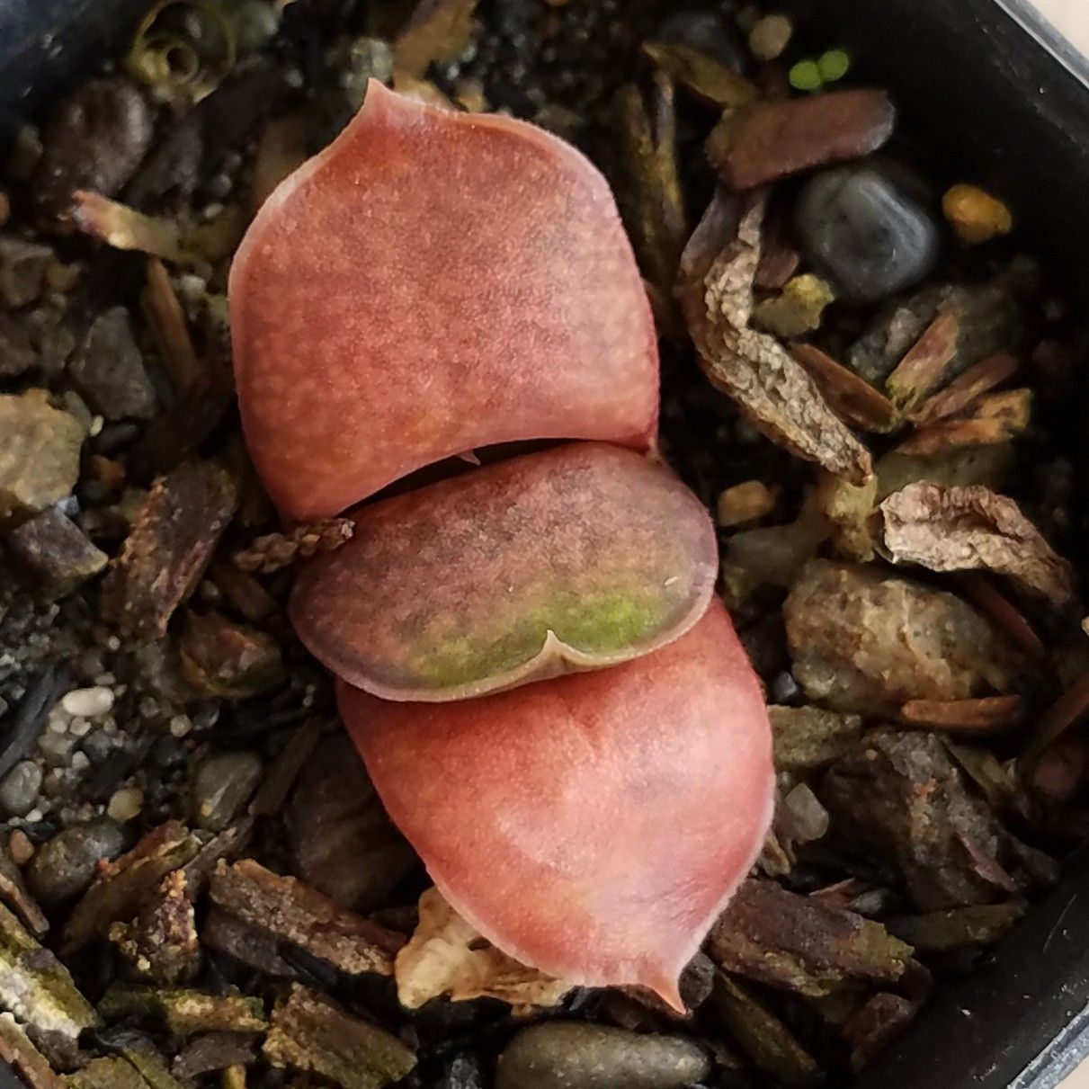 昨年12月7日に購入したピランシー2号。 このように全身赤い色をしていた。 真ん中の葉の先だけ緑が残っていたがここもすぐに赤くなった。 冬だったのでずっと室内に入れていたのだが1月になっても2月になっても赤いまま。 2月28日。 赤いヤツや黒いヤツも室内に置いておくとやがて緑に戻るものだがコイツは一向に戻らない。 これはひょっとして年中赤いのではないか? だとしたら嬉しいな。 赤いのが好きなので。 だが一方で困ったこともある。 全く成長しないのだ。 真冬でも室内置きのガステリアは成長する。 他のガステリアはゆっくりながら成長する中コイツだけは成長しない。 新葉の先端が覗いているがコレが全く出てこない。 赤いのは好きだが成長しないんじゃしょうがない。 ピランシー2号は3月になっても赤いまま。 3月27日。 赤い。 そして相変わらず成長しない。 4月になると暖かい日が増え春の気配が濃厚に漂いだした。 ガステリア軍団も外の半日陰に移動。 柔らかい光と風を当てることにした。 丈夫に育て締まった株姿にするためだ。 ピランシー2号も外へ。 ベランダの冊内側に置きそこからは大して気にしていなかったが、今朝ふと気づく。 ミドリになってんじゃん! いや正確にはミドリになりかけてるじゃん! そして少し成長している。 あわよくば赤いまま成長してくれないかなと思っていたが、そうはならなかった。 でも成長開始は嬉しい。 こうなったらミドリでいいや。 思う存分成長してもらいたいものだ。 にほんブログ村 臥牛(ガギュウ)ガステリア属 多肉植物 9cmポット ◇ガステリア◇臥牛◇白雲タイプ◇ ◇ガステリア◇黒ピランシー◇2.5寸鉢◇ ◇ガステリア◇白馬の輝◇軍配みどり系◇ 多肉植物 ガステリアピランシー×臥牛西村特ダルマピランシー7.5cmポットw=4.0cm