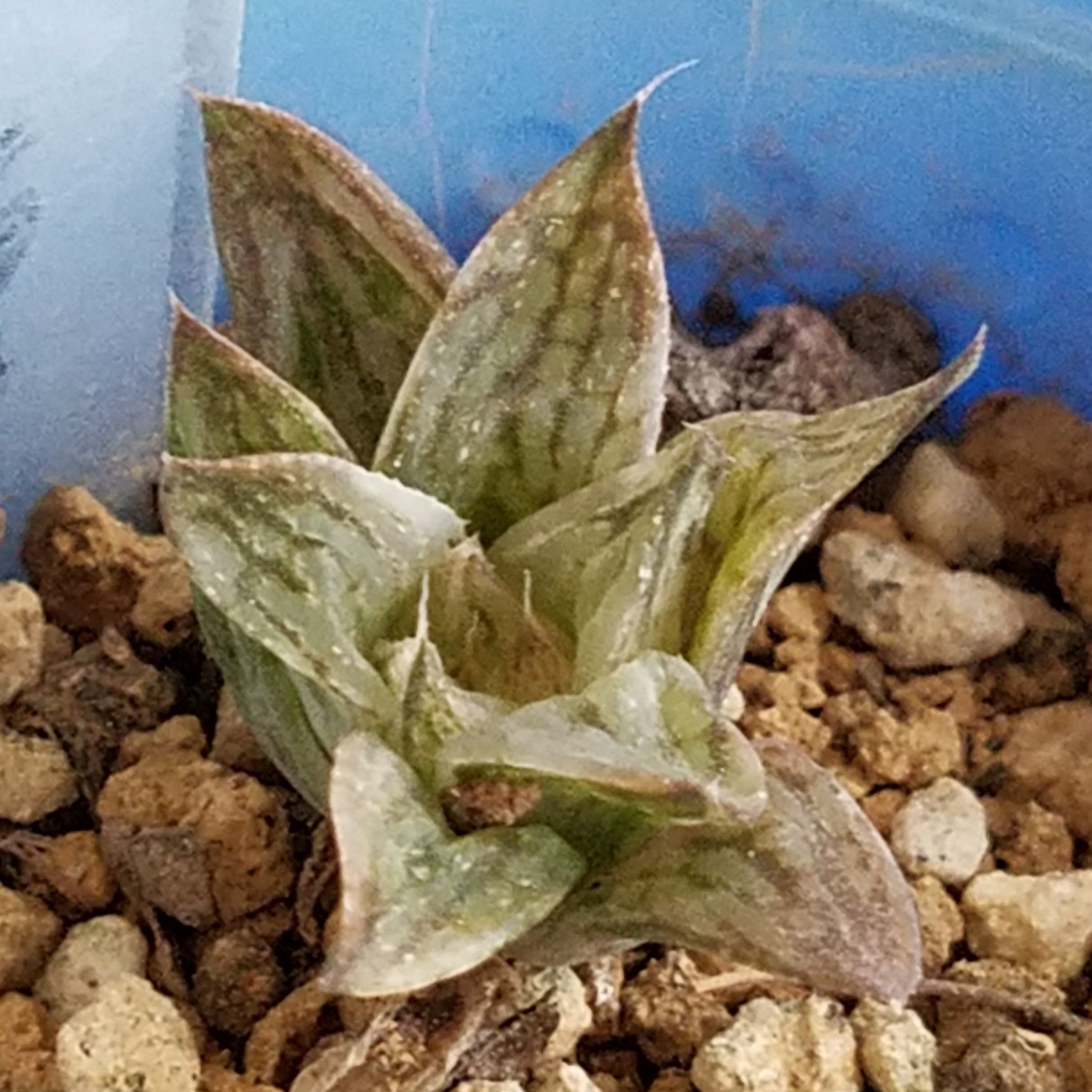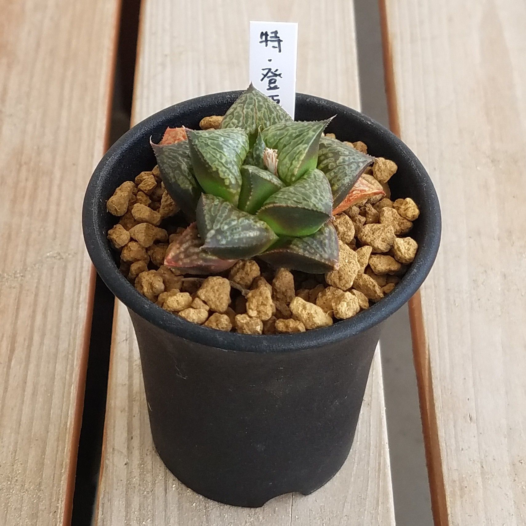 登雲とブルーダイヤモンドを入手したので眺める。 まずは登雲。 2.5号ミニラン鉢植えでこれだから直径4cmといったところか。 決して大きいものではないがすでに整ったロゼット形状をしている。 上から見ると星形だ。 葉のカタチも三角形でキレイだがコイツのチャームポイントはなんといってもこの模様。 丸い点がつながりイモムシ型になったミドリの半透明窓。 窓と窓の間を走る紫の筋状模様。 素晴らしい。 「特・登雲」という名前で入手したから普通の登雲よりさらに何かが良いのだろう。 短葉だとか厚みがあるとか模様が良いとか、そういうことか。 よく分からんが登雲、気に入ったぞ。 続いてブルーダイヤモンド。 これも2.5号ミニラン鉢植え。 登雲と同じような大きさだ。 葉はやや丸みのある三角形で表面がケバケバというかギラギラした感じ。 なるほど、ダイヤモンドと言われるとそんな雰囲気もある。 拡大。 肉牙のようなものが出ているのだな。 短葉で厚みもあり、いいじゃないかコレ。 ブルーダイヤモンドは実はもう一個買った。 「ブルーダイヤモンド・良育種」 良育種って何だ? ふうむ。 コイツの方が丸みが強く赤いな。 そこが良育種ということか。 肉牙もこっちの方が多いようだ。 その分ギラギラ感も強い気がする。 ブルーダイヤモンドもなかなかいいね。 ハオルシア3つ。 全てオークションで落札したものだ。 しかしハオルシアってホント色んなのがあるのね。 全部把握している人っているのだろうか? 底無し沼のような深い世界の気がする。 にほんブログ村 多肉植物:ハオルチア 丸山スプレンデンス*幅5.5cm ピグマエア(特大型)【ジュエルプランツ】ハオルチア属 多肉植物 9cmポット 多肉植物:ハオルチア ピグマエア hyb.*幅6cm 現品!一品限り ※葉に一部傷あり