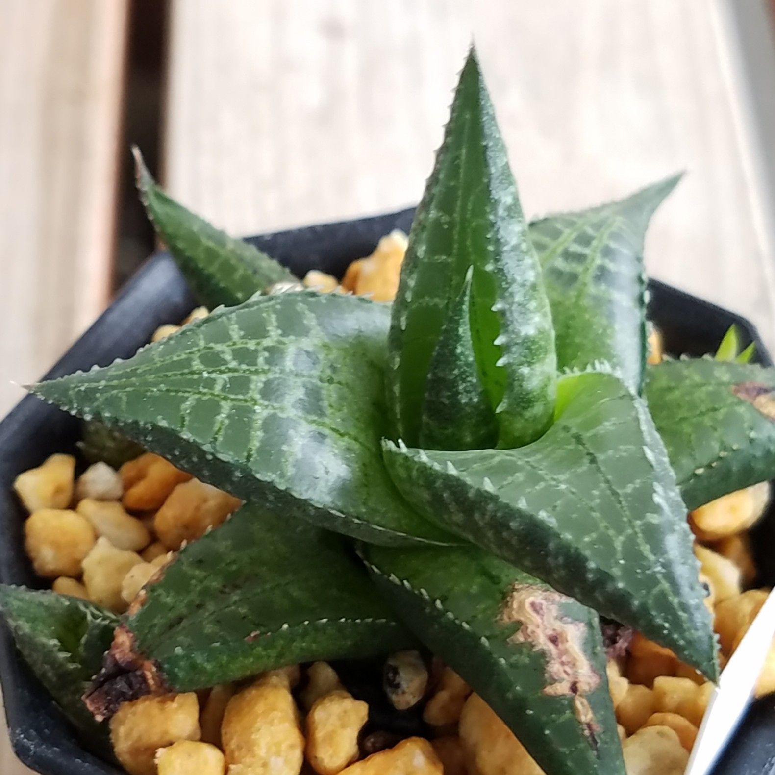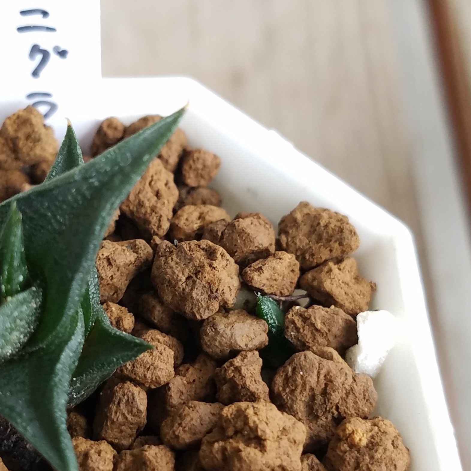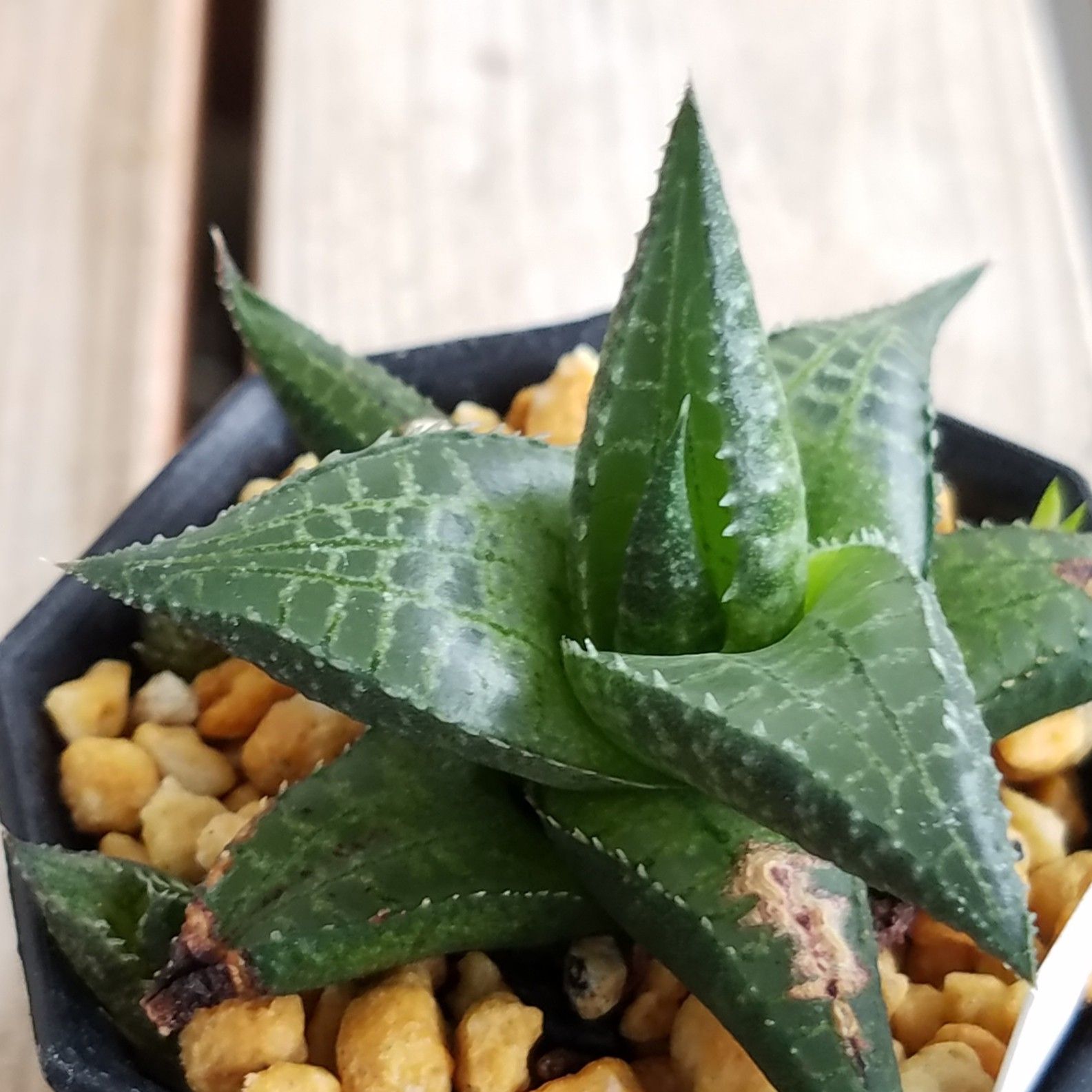 ニグラに仔が出てきた。 小っちゃいのに仔吹くんだね。 こっちのデカい方が先に仔吹いても良さそうなもんだが。 さてニグラ交配種。 上のニグラと同じ2号カクカク鉢植え。 ニグラよりひとまわり大きい。 ニグラと何の交配かは不明だが竜鱗あたりではないだろうか。 カタチはむしろ竜鱗に似ているような気がする。 無数の突起があり肌質はザラザラ。 ニグラもザラザラ、ゴツゴツした質感だがこの感じもむしろ竜鱗に似ているような気がする。 表面にはぼやっとしたブロック模様が入る。 竜鱗だとここは鱗模様なのだが。 いや、でも竜鱗でもコリアセアなんかはブロック模様だな。 う~ん。 よく分からん。 ニグラ交配種。 ニグラと何の交配なのかは不明だ。 だがこの黒い色、ザラザラ感、草姿、どれをとっても好み。 よく分からないヤツだが大事に育てよう。 にほんブログ村 ◇ハオルチア◇鬼瓦◇2寸鉢◇ 観葉植物/[送料無料]ハオルチア:ニグラ直径7cm鉢植え 多肉植物:ハオルチア ニグラ リンベルディ*幅9cm 現品!一品限り 多肉植物:多肉植物:ハオルチア ニグラno.1 特丸葉ダルマタイプ*幅2cm 現品!一品限り 多肉植物:多肉植物:ハオルチア ニグラno.1 特丸葉ダルマタイプ 子株付*幅2cm 現品!一品限り