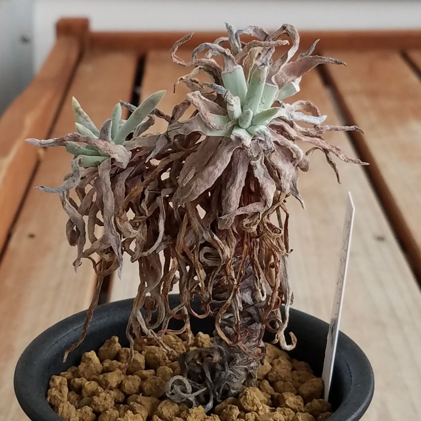 7月。 冬型のダドレアにとっては苦手な季節。 去年の今ごろはまだブリトニーしかいなかったが、7月8月と下葉が枯れ小さくなっていったのは覚えている。 そして今年もふと気づくとハッセイがすでに小さくなっていた。 下葉の枯れがかなり上の方まで進行している。 ヤバいんでないの?コレ。 成長点にほど近い葉まで枯れかかっているぞ。 根元はミドリでも先端から半分ぐらいは枯れている葉が数枚ある。 多少小さくなることは覚悟していたがまだ7月。 暑い時期はこれからというときに既にこの状態では梅雨が明け猛暑が来たらひとたまりもないのではないだろうか。 ハッセイ。 ピンチ。 他のハッセイはどうなんだろう? ちょっと見て見よう。 コイツもヤバいな。 上のヤツほどではないが枯れが進行している。 コイツも下から徐々に枯れつつある。 一時は復活したコイツもまたゴミ化してきた。 やべー。 ハッセイ全員枯れ枯れだ。 ヴィリディス・V・インブリカータはどうなんだ? コイツも小さくなっている。 ブリトニーもか? ブリトニーもだ。 つーことは.....。 まあこんなもんなのだろう。 ダドレアはこの時期葉を枯らす。 去年のブリトニーもこんな感じだったから気にしないでいいのかもしれない。 置き場だけ変えてやろう。 今はまだ最前部の直射日光が当たるところに置いているが奥の明るい日陰に移そう。 涼しく過ごさせ夏を乗り切る。 これぐらいしかしてあげられることはない。 真夏が来る前でこの状態はかなり恐ろしいものがあるが、何とか乗り切ってもらいたいものだ。 にほんブログ村 ◇ダドレア◇クサンチ◇2.5寸鉢◇ 多肉植物:ダドレア ヌビゲナ*幅9cm ダドレア ヴィレンス ハッセイ 多肉植物 珍奇植物 ビザールプランツ caダドレア パキフィツム 多肉植物 ダドレア 9cmポット ☆【現品・現物】【多肉植物】珍しい現地球!!ダドレア・パキフィツム 4号 1番2番 Dudleya pachyphytum