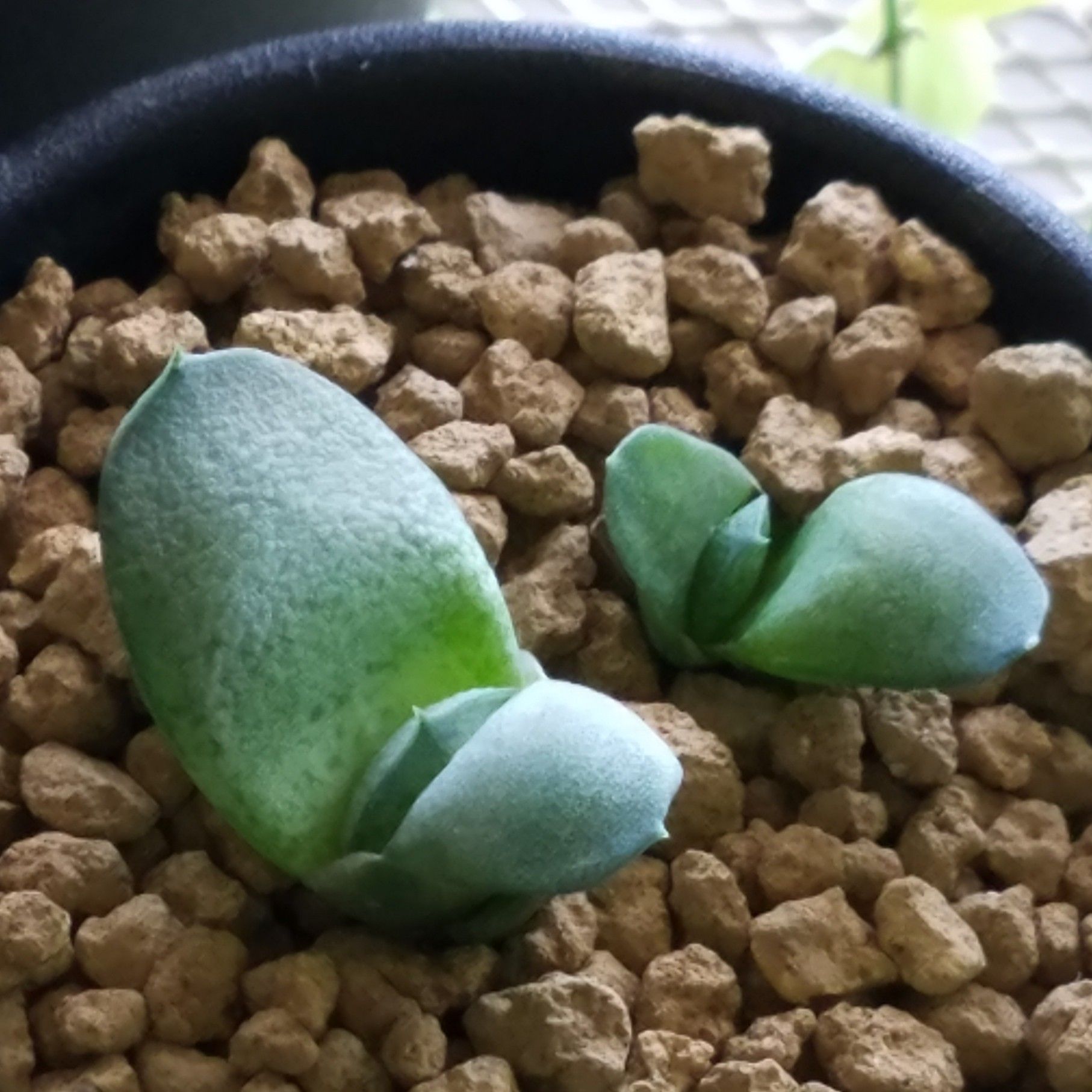 根挿し玉扇が成長した。 前回記事がいつだったか忘れたが、その時からかなり成長している。 白い棒から生える緑の葉がカワイイ。 発芽数も6本に増えた。 これが最初に発芽した1号。 早くも玉扇的な葉になりつつある。 この手前のヤツも新葉がそれらしいカタチをしている。 徐々に玉扇化していくのだろう。 だが奥のヤツはぽくない。 扇状に展開はしているものの葉の先端はとがっている。 ま、万象も最初こんな感じ立ったから心配事しなくともいずれ玉扇になるわけだが。 2頭立てになってるのも多い。 2頭とも残りそうな雰囲気だ。 これらの根挿しの親がコイツら。 立派な玉扇だ。 厚みのある葉で全長10cmぐらいある。 もうひとつがコレ。 薄葉タイプでコイツも10cm近くある。 仔を吹いている。 仔は成長が早い。 根挿しよりこっちの方が早そうだ。 もうひとつの玉扇根挿し鉢。 イルミネーション斑の根挿しだが、まだ発芽ゼロ。 6月8日植え込みだから1ヶ月弱。 上の根挿しが発芽まで50日かかったからもう少し時間が必要か。 葉挿しだと斑は消えるというのはよく聞くが根挿しはどうなんだろうね。 にほんブログ村 玉扇錦 多肉植物 白鶴玉扇錦系 多肉植物 玉扇錦 多肉植物 ハオルチア属/特選玉扇錦/サボテン/多肉植物/希少【送料無料】 【多肉植物】希少品種 ハオルチア属 大型玉扇錦【送料無料】
