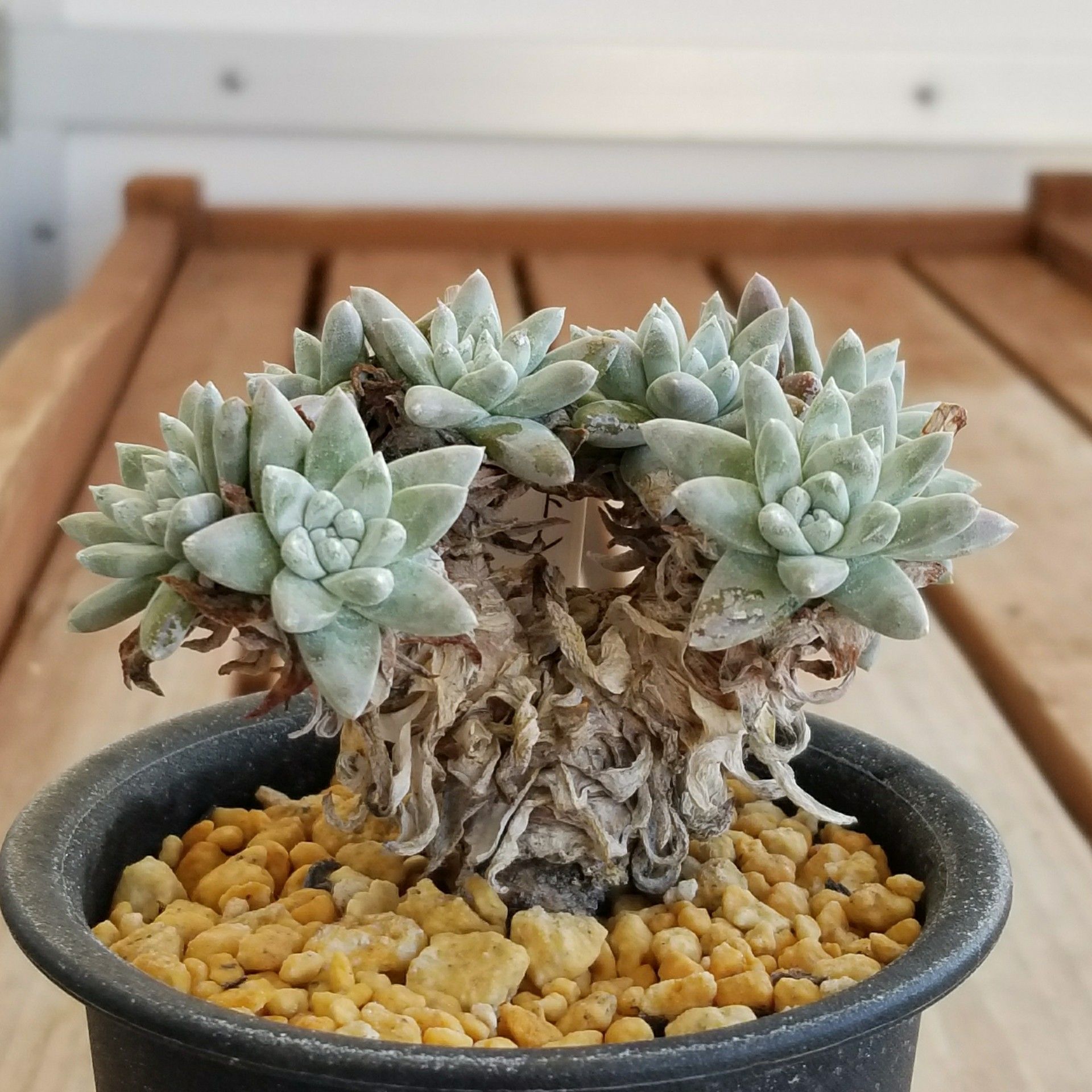 寒い時期に生育するダドレア。 現在生育期真っ只中。 決して生育は早くないがそれでも少しずつ少しずつ成長を続けている。 ノーマ。 今年も分岐するようだ。 いくつかの枝にその兆候が見られる。 上の枝下の枝ともに分岐中。 来年には2本が4本に増えていることだろう。 コイツは分岐が始まったばかりのようだ。 これもいずれ2本になるはず。 いやひょっとしたら花芽かもしれないが、今のところ分岐っぽい。 分岐を繰り返し徐々にデカくなるノーマ。 どこまでデカくなるのか? 謎だ。 ハッセイ。 他のダドレアもそうだが太陽の方を向くのが早い。 コイツも左に向いている。 夏は瀕死状態だったがかなり復活している。 先が枯れていないキレイな葉はほとんど今年出たものだ。 枝は変わらず3本。 今年は分岐しないのだろう。 ハッセイ2。 コイツも夏はズタボロだったがだいぶ復活した。 先端が赤い葉が元からあったもの、真ん中の先端まで白い葉が今年出たものだ。 ハッセイ3は何度も記事にしているが夏が終わったころには全枯れ状態みたいになっていた。 10月27日。 生きている葉がない。 確か7月ぐらいからこの状態だった。 捨てようと思っていたのだがなぜか捨てずに放置して鋳たところ新芽を発見した。 ゴマ粒より小さいミドリの点々が画像中央に確認できるとおもうが、現在これが育ちこのように。 順調じゃねえかよコノヤロー。 点々は葉っぱになりそれぞれの箇所でロゼットを形成し始めている。 さすがにまだ粉はのってこない。 小さいうちはミドリなんだろうな。 劇的な大復活。 嬉しい。 だがコレ。 どんな風に育つんだろう? 5ヶ所ぐらい成長点がある。 これが全部枝になり伸びていったら変わったカタチになりそうだな。 ま、それもいいか.....。 にほんブログ村 多肉植物ベンケイ草科◇ダドレア◇グリニー◇2.5寸鉢◇ 多肉植物 osダドレア グノマ おもしろ多肉植物 多肉植物 osダドレア ヴィレンス spp ハッセイ おもしろ多肉植物 ダドレア ヴィレンス ハッセイ 【C】 多肉植物 珍奇植物 ビザールプランツ ダドレア ヴィレンス ハッセイ 【A】 多肉植物 珍奇植物 ビザールプランツ