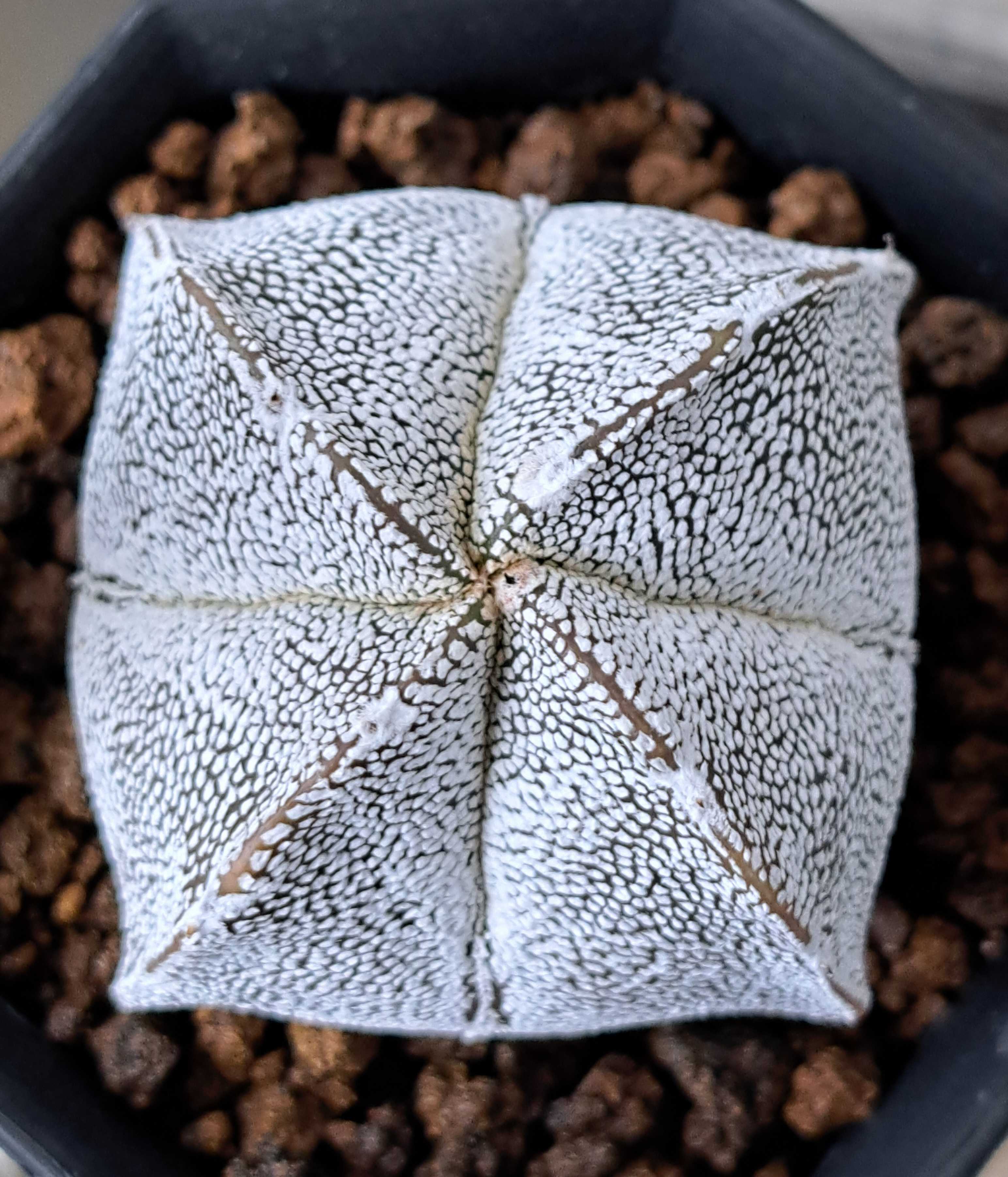 サボテンの様子を見よう。恩塚鸞鳳玉からいってみるか。通常の鸞鳳玉より白点が大きいため白い。選抜を繰り返してこういうものを作り出したのだろうが、スゴいことだね。鱗のようにへばりついた白点。見事なものだ。なんという精密さ。たまげるしかない。亀甲×複隆。ぼこぼこした突起を持つ鸞鳳。これも好きなんだよね。何でこんな突起ができるのか?全く分からないが実に良い。亀甲×磐石。コイツもなかなか面白い。突起と白条があり6稜。中心部は白く周囲はミドリ。株元から茶幕が上がってきている。多少はいいけどあまり上まで上がってくるとイヤだな。これも亀甲×磐石だがだいぶ違う。突起なし白条なし5稜。だが稜はぼこぼこと波打っている。これは面白い。デカくなればさらに良くなるかもしれない。大鳳玉錦。どんどんトゲが増える。しかもこのトゲ長い。本体より長い。トゲが出始めたのは去年の1月。そこから1年5ヶ月で6本に増えた。斑入りのわりに意外と早いな。サボテンって成長しているのかしていないのかよく分からん場合が多いが、意外と着実に大きくなっているんだよね。上の鸞鳳系も多分デカくなっているんだろうな。アストロフィツム・亀甲鸞鳳玉錦 7.5cm鉢 カクタス長田 サボテン科 多肉植物 斑入り ランポー玉 サキュレントプランツ 珍奇植物 有星類多肉植物 鸞鳳玉 アストロフィツム サボテン 良株 美株 高品質 1 株入り観葉植物/[棚卸セール]サボテン:アストロフィツムミリオスティグマ 複隆 2.5号鉢植え恩塚磐石アストロフィツム・亀甲碧瑠璃鸞鳳玉 9cm鉢 カクタス長田 サボテン科 多肉植物 ミリオスティグマ ランポー玉 サキュレントプランツ 珍奇植物 有星類【アストロフィツム 雪陵亀甲ランボー】管理方法付き4号鉢 サボテン 多肉植物 希少 珍奇植物 レア 珍品 珍しい インテリア 観葉植物 グリーン 人気 おうち時間 プレゼント ギフト おしゃれ 新生活 引っ越し 新築祝白条複隆般若