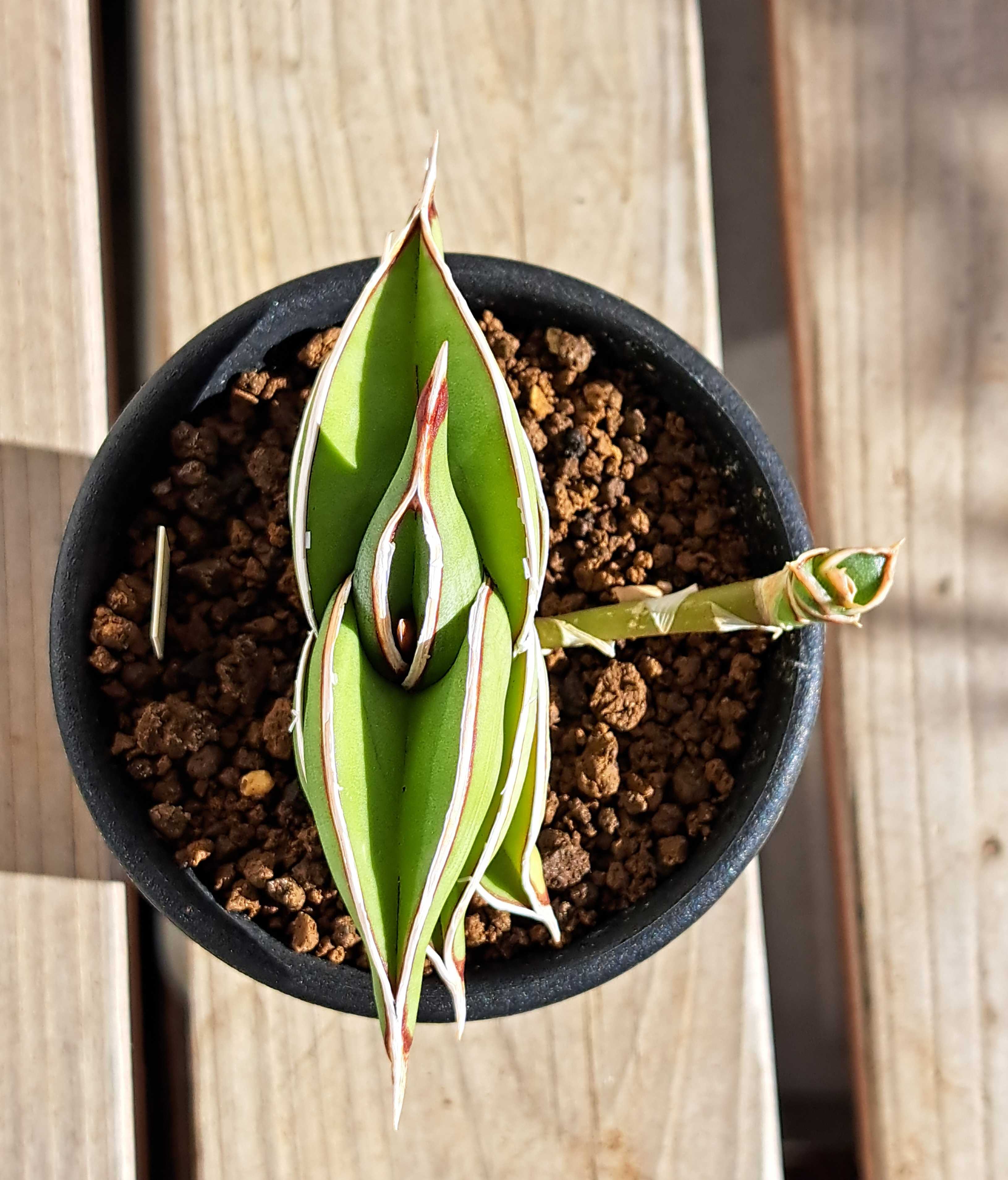 久しぶりにサンスベリア・ロリダの様子を見る。前回撮影時の昨年11月28日。現在。仔がだいぶデカくなったな。数倍の大きさになっている。一方本体はというと…全く変わらない。仔の成長に全エネルギーを費やしているのか?フツーこの時期には成長するものだが…。そういえばピングイキュラもこんな感じだった。そういう性質なのか?まあいい。その分仔が成長しているのだ。だいぶそれらしいカタチになってきたし、可愛いじゃないか。バナナ。昨年9月20日。現在。10ヶ月も写真撮ってなかった。スゲー久しぶりだ。だが、成長はわずか。新葉が少し伸びただけ。成長が遅い種ではあるがそれにしても遅い。さらにシミまでできている。それも新葉に。がっかりだ。ずっと室内で育てている。外で直射日光に当て焼けたとか、そういうことではない。冬の太陽が低い時期に室内に差し込んだ光で高温になり焼けたのだろう。多分。カタチはきれいなのにもったいない。次の冬は窓越しの日も当てないようにしてみるか。ボンセレンシス・スーパードワーフ。昨年11月28日。現在。コレ確か植え替えたのだ。仔株2個のうち1個は他の鉢から移植したもの。で、もう一個が新たに出てきたものだ…と思う。親の方もまだボンセレンシスの特徴が出ていないが今出ている新葉はそれらしいカタチ。今後が期待できる。こんな感じになるのだ。ムチムチ肉厚の魅力的なカタチ。これを目指す。観葉植物 サンセベリア(サンスベリア) ロリダ 2.5号硬質ポット(個体おまかせ1鉢) インテリアグリーン おしゃれ 可愛い かわいい コンパクトサンセベリア・ロリダ 7.5cm鉢 カクタス長田 キジカクシ科 多肉植物 キング・オブ・サンスベリア 珍奇植物 サキュレントプランツ 観葉植物 サンセベリアの王様サンセベリア・エーレンベルギー バナナ 7.5cm鉢 キジカクシ科 多肉植物 サンスベリア 珍奇植物 サキュレントプランツ 観葉植物 肉厚葉サンセベリア バナナ Sansevieria Banana 観葉植物 多肉植物 熱帯植物 バムズ インテリア植物 岐阜市観葉植物 タイ産多肉植物:サンスベリア ボンセレンシス スーパードワーフ*幅7cm