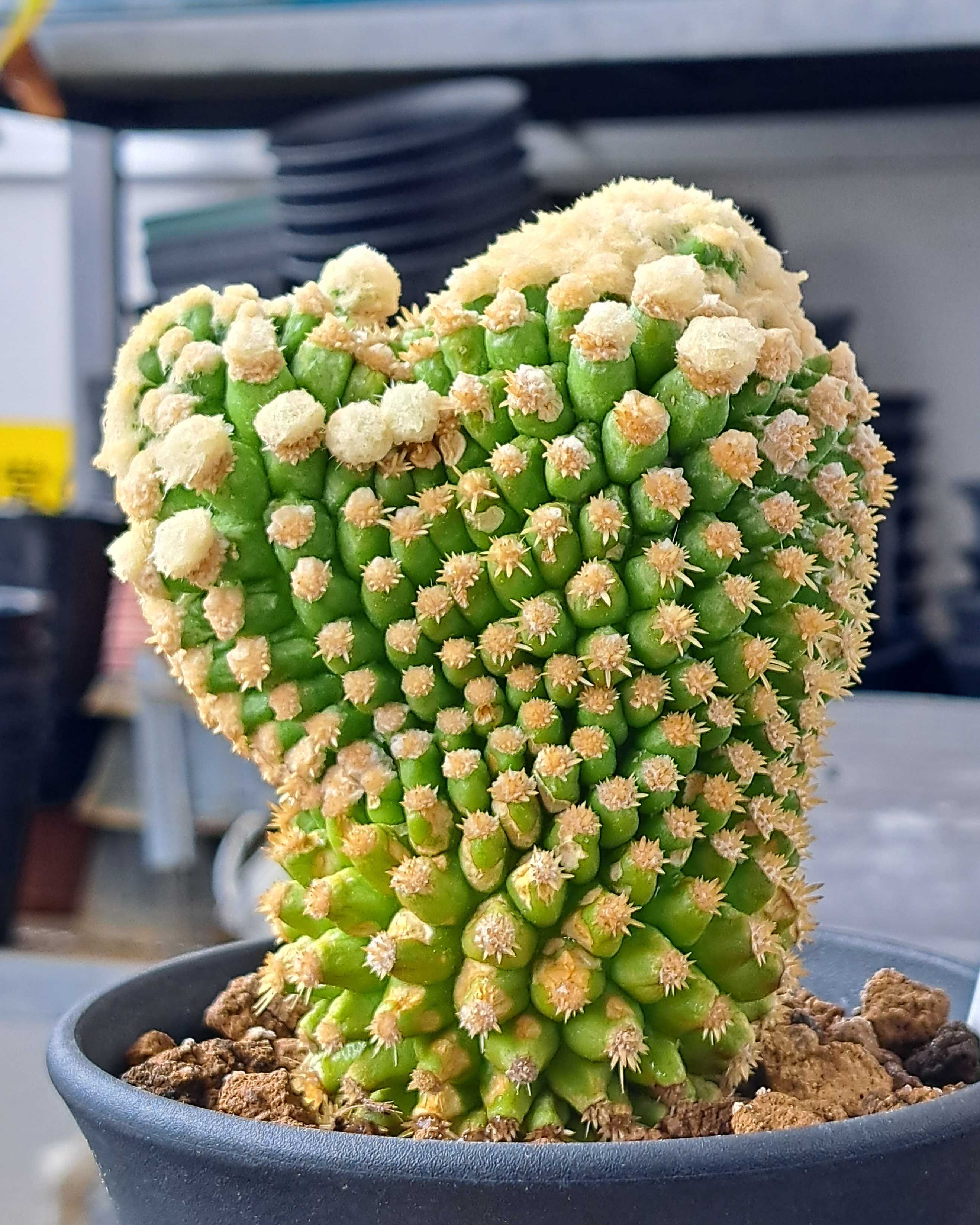 短刺白刺金鯱。夏になってもずっと動きがなかったが最近ちょっと変化してきたんじゃないの?右上のコブのような盛り上がり。白い綿毛におおわれたこの丘のような箇所。隆起してきている気がする。さらに、小っちゃい隆起も。こんなものなかった。最近できたのだ。よく見るとこのような隆起は多数見られる。イボの先端にある短いトゲ、それをおおうように綿毛が盛り上がっている。それがいくつもあるのだ。これは何?仔か?それとも何か違うもの?全く分からん。まあいいや。変化の具合を確認しよう。いつものように過去と現在の画像を比較する。7月4日。現在。うむ。やはり右上のコブがデカくなり小っちゃい綿毛の盛り上がりも10個ぐらい確認できる。反対側も比較してみる。7月4日。現在。おや?こっち側には小っちゃい綿毛の盛り上がりは見られないな。しかしてっぺんの隆起具合ははっきりと確認できる。動き出しはやたら遅かったが今成長してる様子。さて、この後コイツはどんな風に変わっていくのか?全く想像がつかないだけに楽しみは大きい。今秋末には秋が来るらしいけど…まだ成長するよね?crnサボテン エキノカクタス 金鯱モンスト 自根 コロンカクタスさん苗 7.5cmポット キンシャチ CORONCACTUS 仙人掌 送料無料ギムノカリキウム・牡丹玉モンスト 7.5cm鉢 カクタス長田 サボテン科 多肉植物 ミハノビッチ 石化 サキュレントプランツ 珍奇植物 モンストローササボテン:ロフォフォラ 銀冠玉モンスト*幅5.5cm 現品!一品限りサボテン:鸞鳳玉(らんぽうぎょく)モンスト*幅5cm ☆赤松実生 現品!一品限りサボテン:ロフォフォラ 銀冠玉モンスト*幅8cm 現品!一品限り