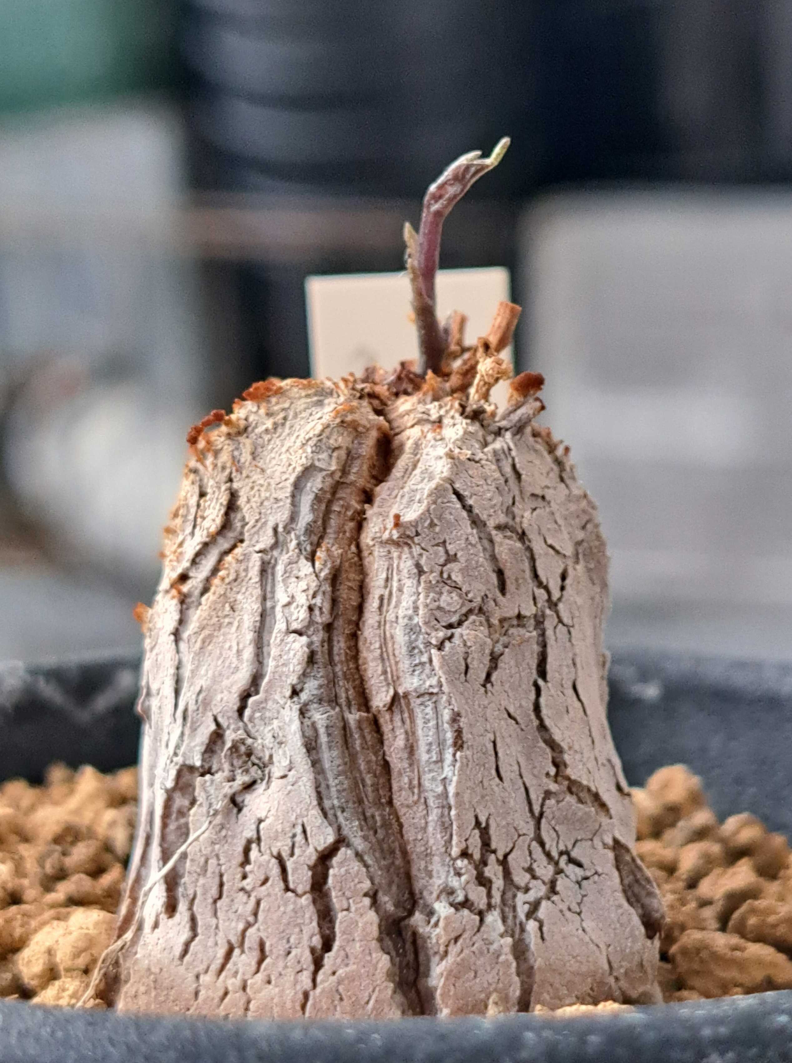 ディオスコレア・エレファンティペス和名アフリカ亀甲竜。9月5日に成長開始の記事をアップしたが動き始めは成長遅くいまだこんな感じ。前回登場時がコレ。5ミリ伸びたぐらいか?毎年こんな感じ。このヒジキみたいなツル、出て来るのが遅いのだ。ただ、途中からはぐっと早くなる。涼しくなると早いのか、その辺はよく分からん。前回はまだ芽が出ていなかったバキバキ亀甲竜。今日見たら芽が出ていた。拡大。塊茎がデカいからか芽も太い。すでに数枚の葉が準備されている様子で数日後には葉を出しそうな勢い。これで全員動き始めたことになる。では植え替えようか。実は去年は植え替えをサボった。土も更新してやらねば。その前にコイツのイモがどれだけデカくなったか確認しよう。2年間にイモを埋めた亀甲竜。デカくなったからか現在は地上に出てきている。コイツの成長具合を確認するのだ。これが2年前2023年8月27日。そして現在。おお!やはりデカくなってる。亀裂も入っているし相変わらずまん丸。良いカタチに育ちそうだ。では抜いて根と塊茎を観察しよう。1号。2号。3号。どれも根はよく張っているが塊茎のカタチは違う。特に1号はタテ長でこういう亀甲竜は珍しい。これから横に太っていくのか?それともタテ長のまま成長するのか?できれば横に太ってほしいがタテ長のデカい亀甲竜というのも見てみたい気がする。植える。1号2号は変わらず2.5号鉢。3号はひとまわり大きい3号鉢に格上げ。水は一日おいてからやることにする。さあ準備は整った。思い切り成長してくれ。ツルもそうだが特に塊茎。どんどん太ってくれ。デカくなるほど見ごたえがます亀甲竜。成長が楽しみだ。観葉植物 ディオスコレア エレファンティペス(亀甲竜) 2.5号透明ポット(個体おまかせ1鉢) インテリアグリーン おしゃれ 可愛い かわいい 室内園芸亀甲竜 ミニ ディオスコレア エレファンティペス 2.5号 塊根植物 観葉植物 小さい 卓上 希少 種 コーデックス 多肉植物 冬型 おしゃれ 鉢 移転祝い ガーデニング 贈り物 プレゼント 亀甲龍夏ギフト お中元ディオスコレア・エレファンティペス 亀甲竜 9cm鉢 カクタス長田 ヤマノイモ科 多肉植物 コーデックス 塊根植物 サボテン 珍奇植物 南アフリカ原産亀甲竜 きっこうりゅう ディオスコレア・エレファンティペス 実生2年目 3号鉢 塊根植物 コーデクッス 多肉植物 観葉植物 人気種 ヤマノイモ科 ディオスコレア属 Dioscorea elephantipes観葉植物/ディオスコレア(亀甲竜):エレファンティペス 2.5号25-03ディオスコレア 亀甲竜 管理方法付き2.5号鉢 サボテン 多肉植物 希少 珍奇植物 レア 珍品 珍しい インテリア 観葉植物 グリーン 人気 おうち時間 プレゼント ギフト おしゃれ