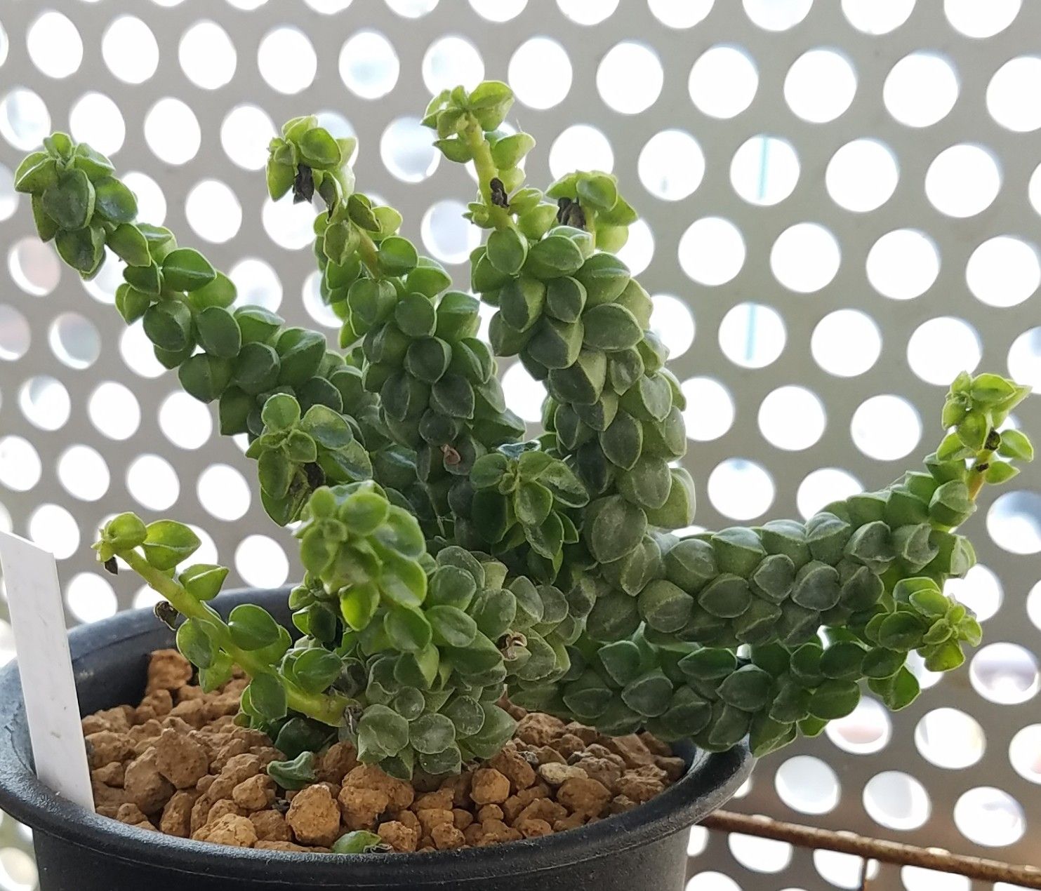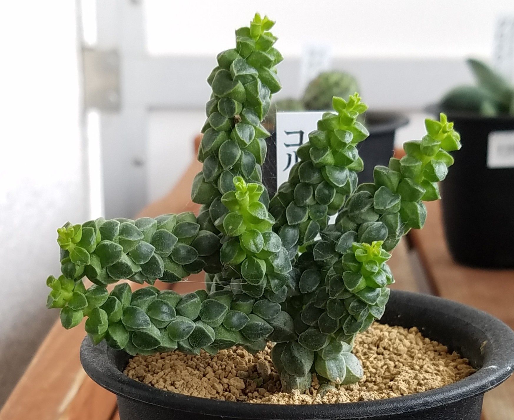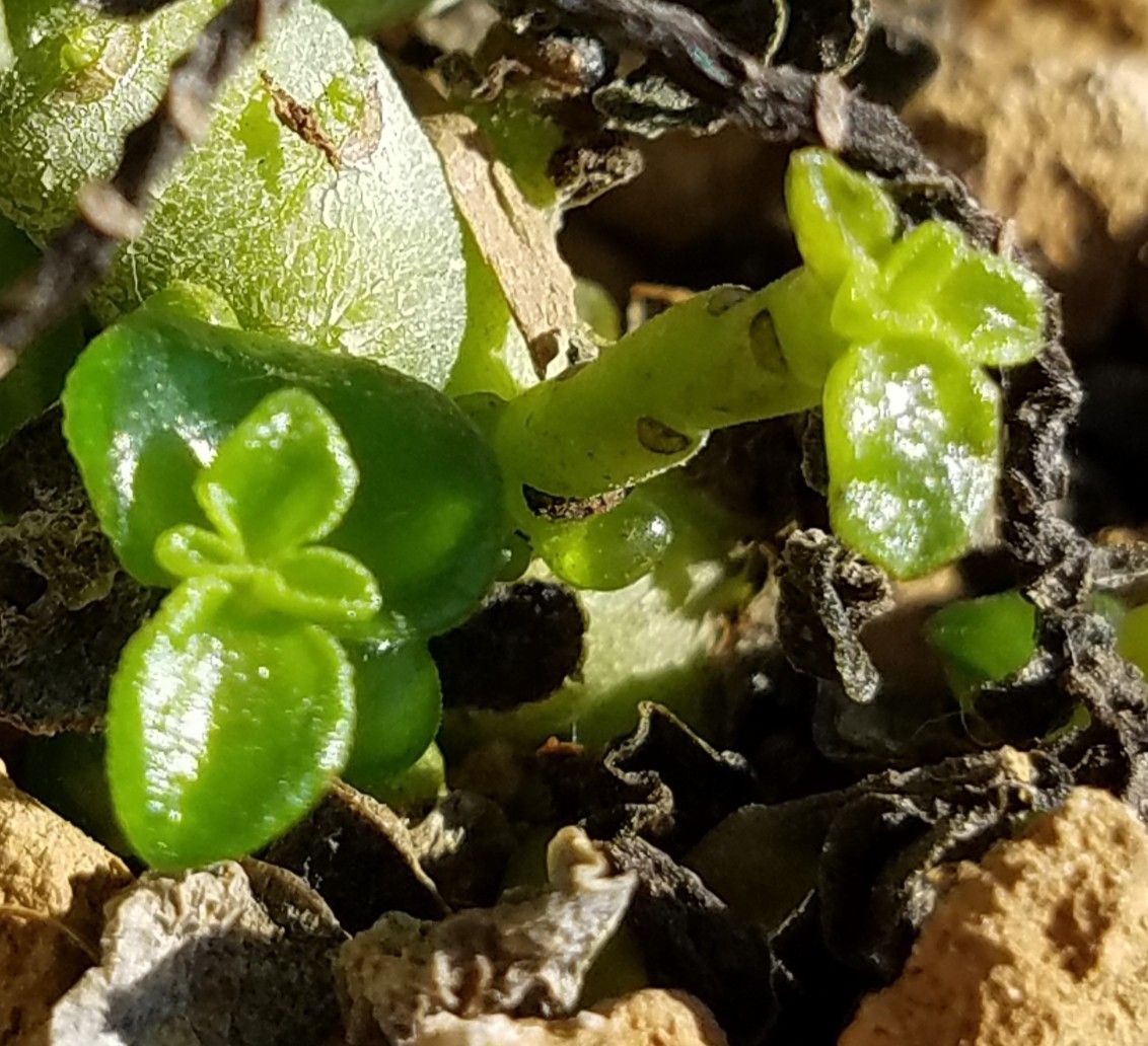 分厚く小さな葉が密に付き茎が見えないほど。