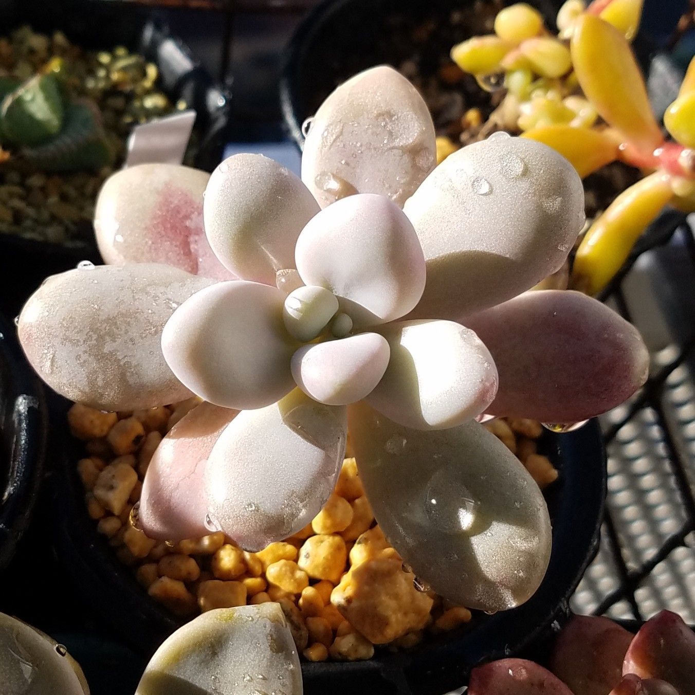 セダムやグラプト、パキフィツムなどの春秋型も2週に1回じょうろでひと回し半。