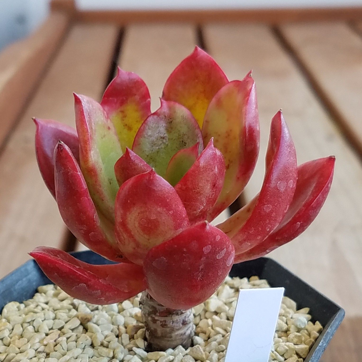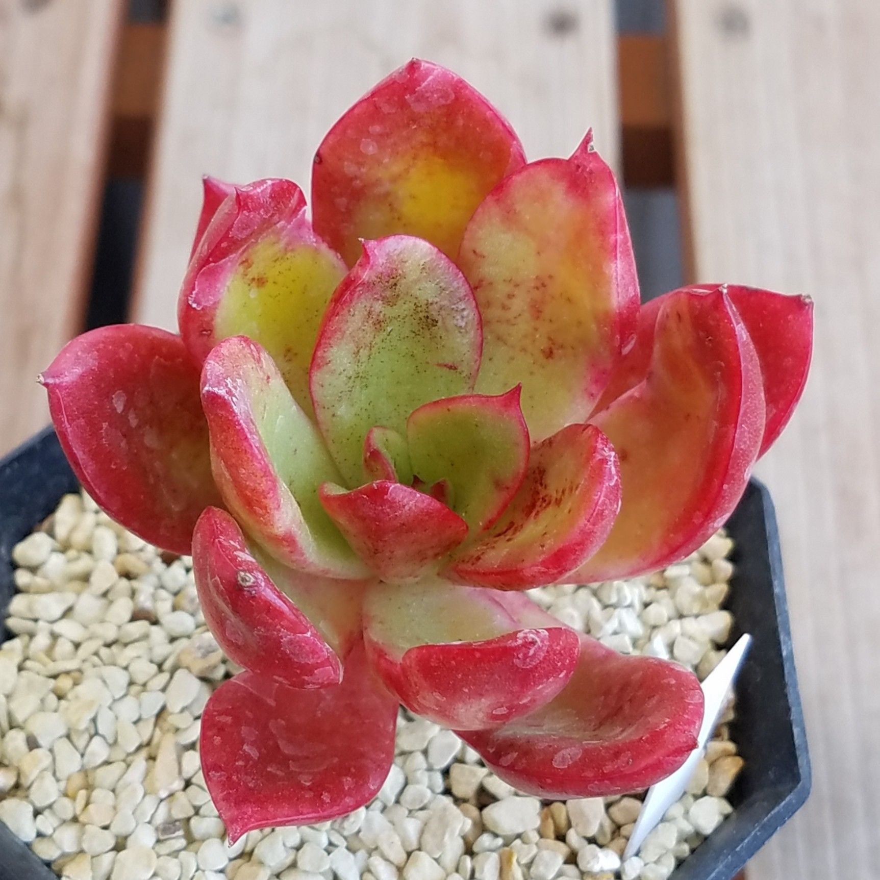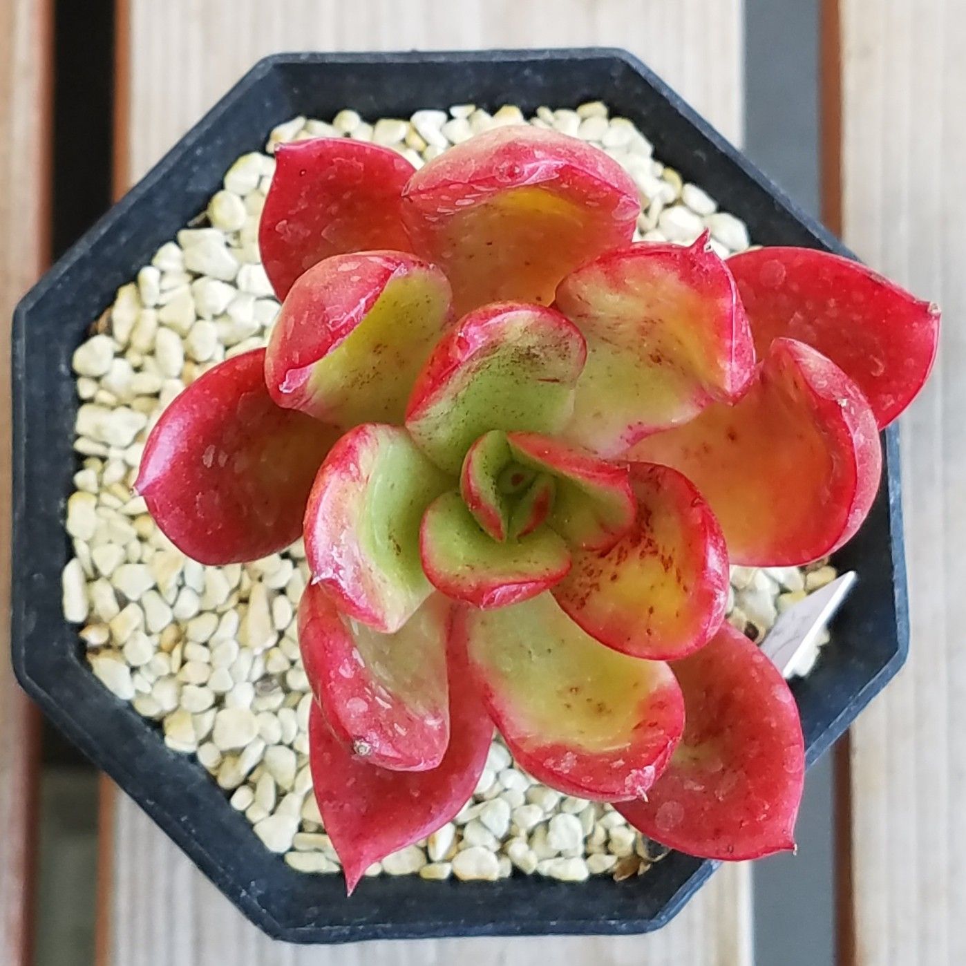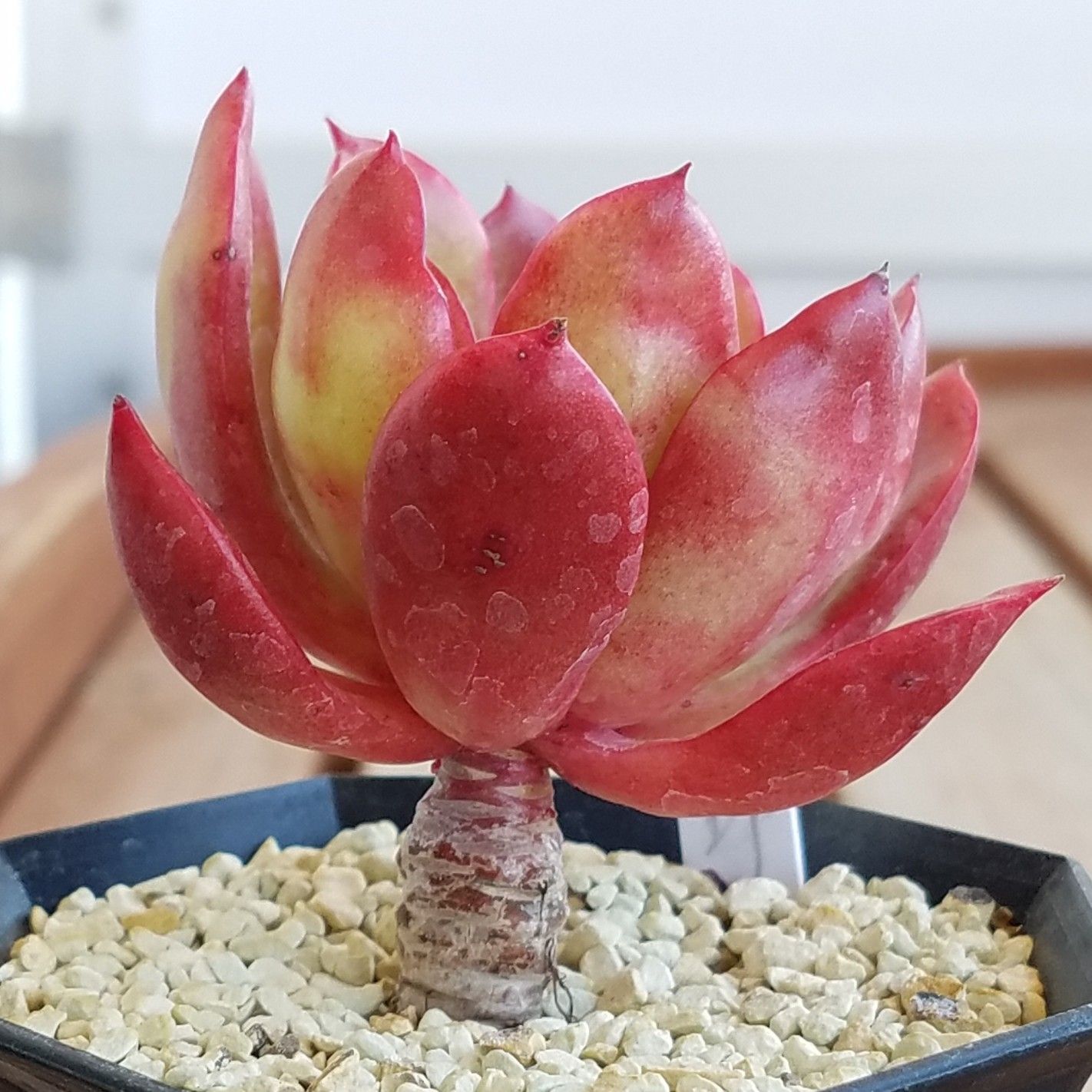 2号カクカク鉢植えなので高さ5cmロゼット径5cmといったところか。