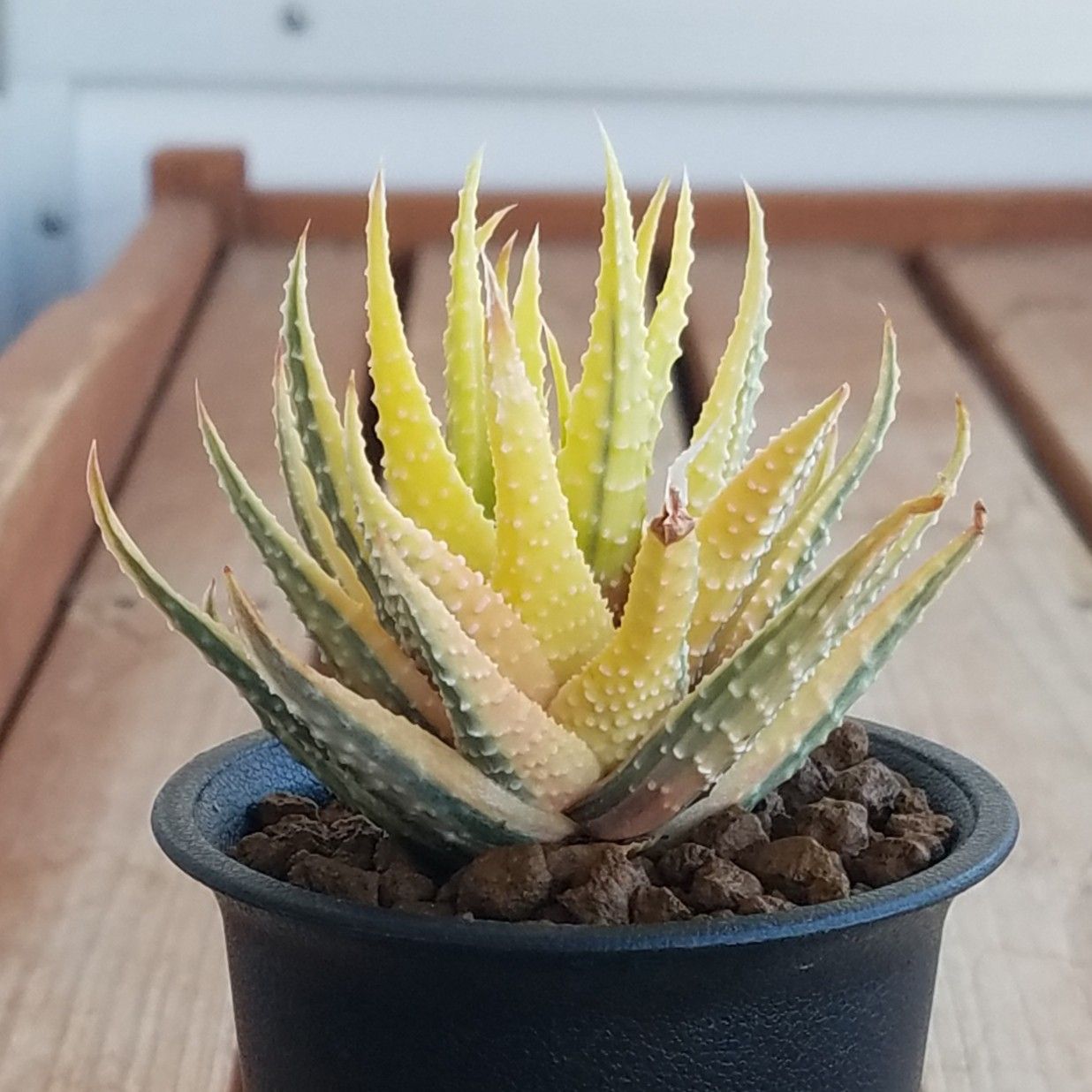 小っちゃいアロエだが黒い肌に白いノギが映える。