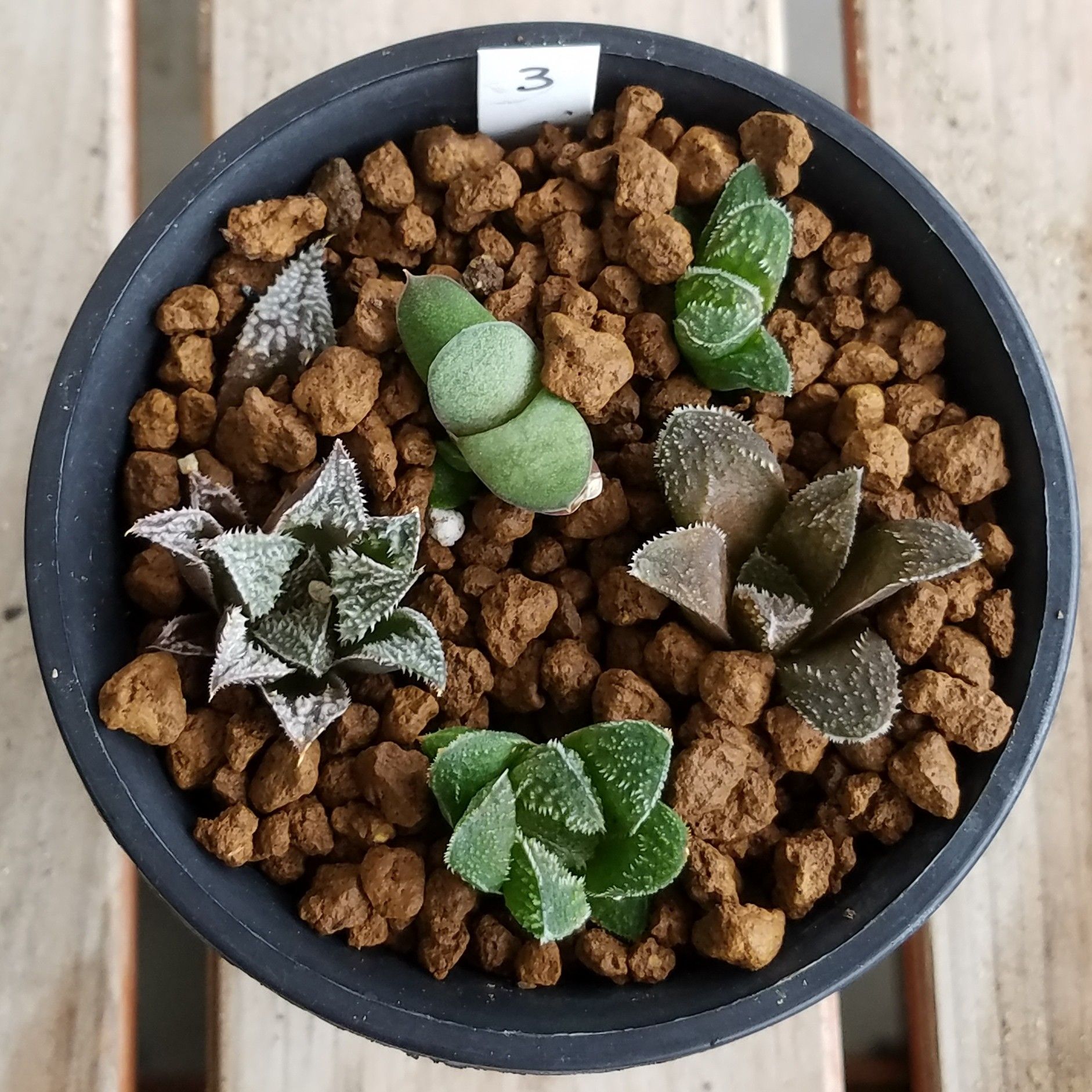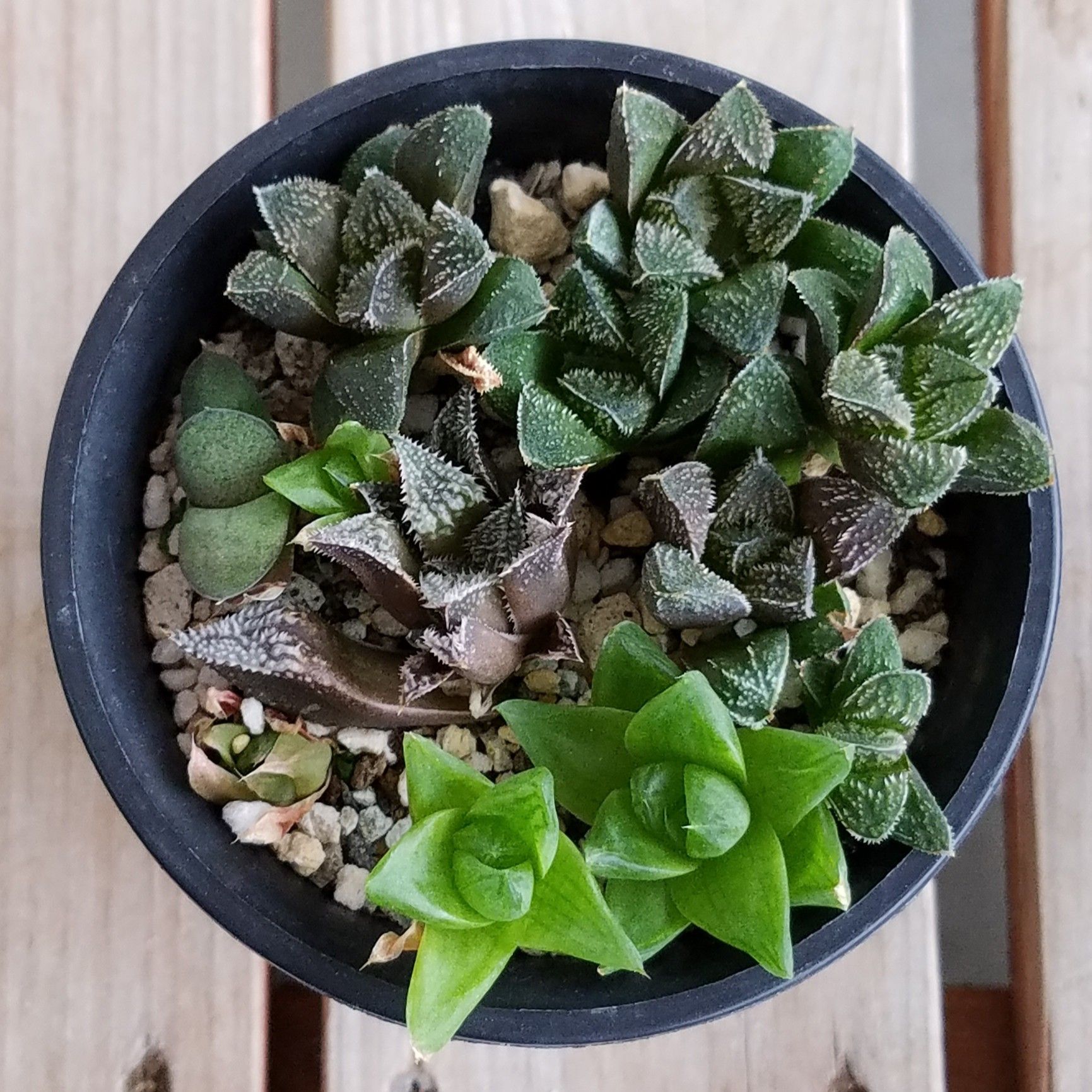 多肉植物 ハオルチア毛蟹×ベヌスタ黒肌絵巻NA7.5cmポット