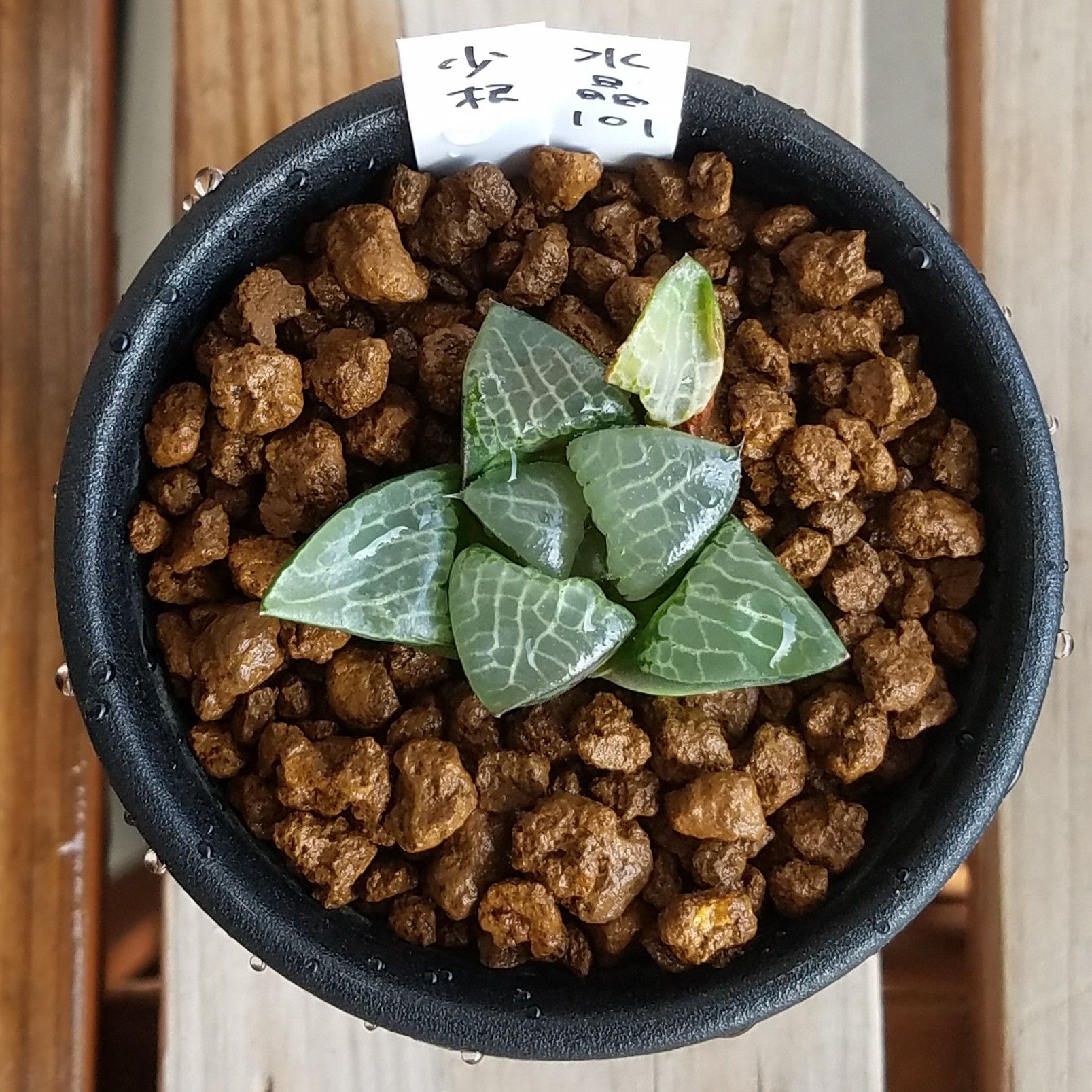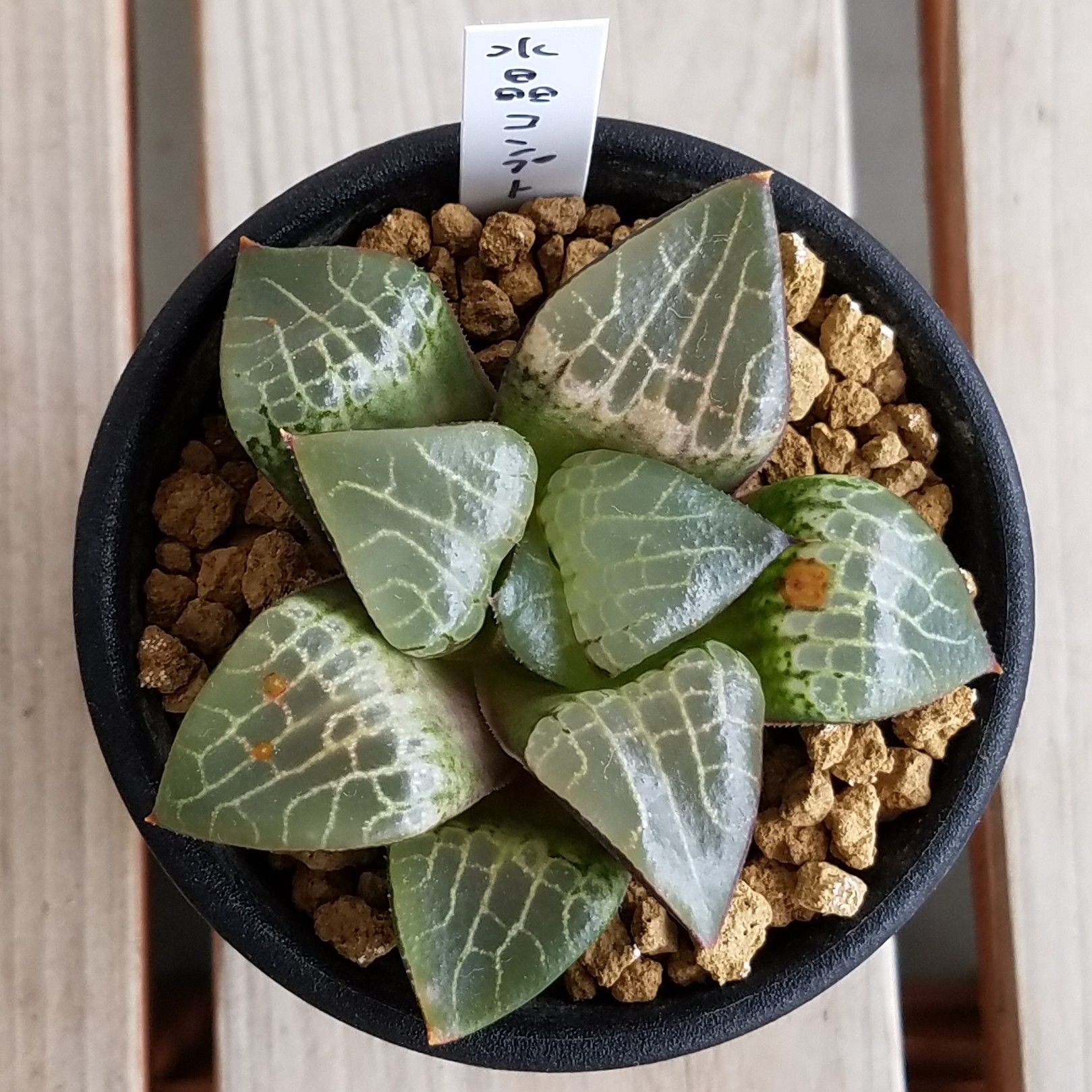 niハオルチア 流紋コンプト×N水晶コンプト 実生苗 多肉植物 カクタスニシさん苗 ハオルチア 0904-116 現品販売 7.5cmポット