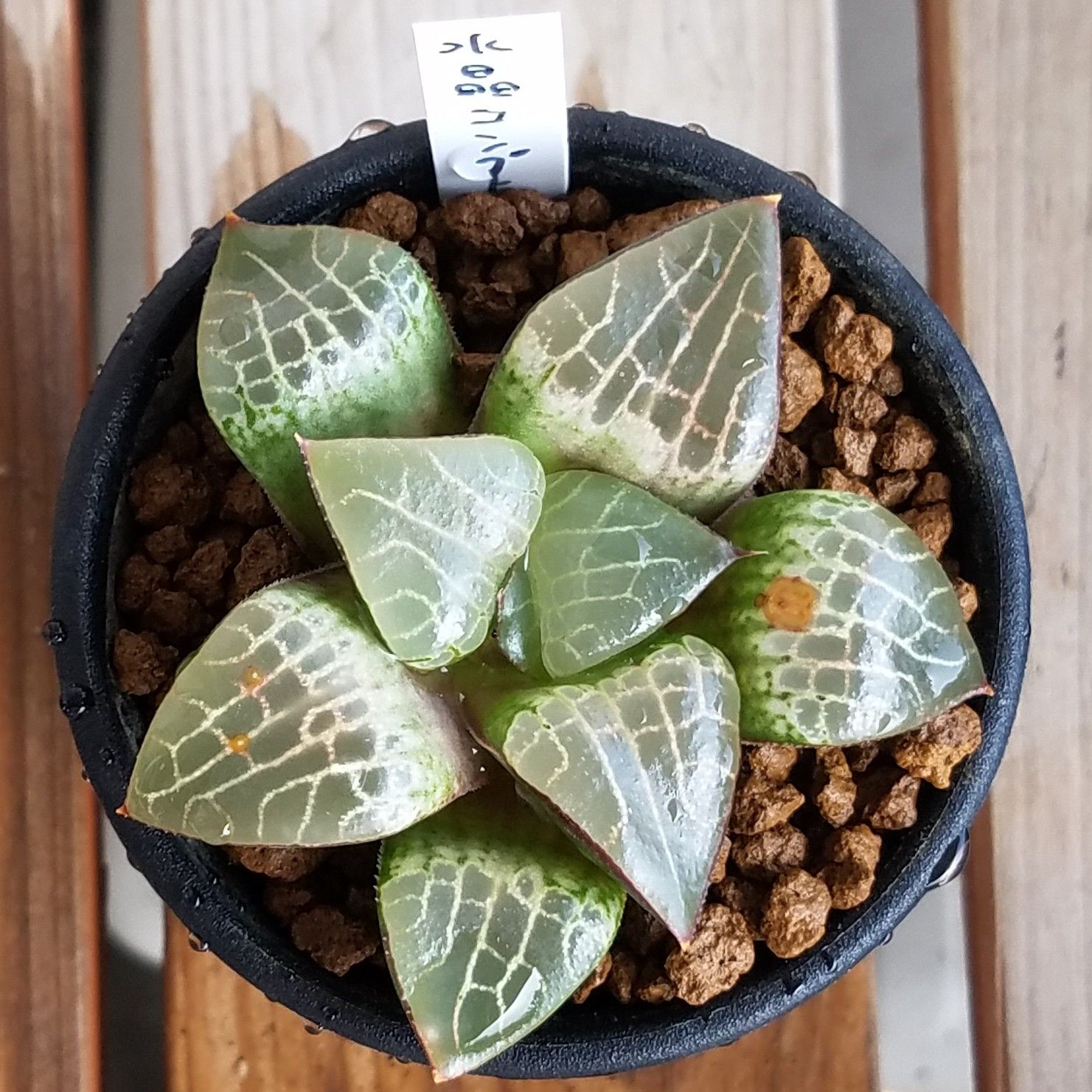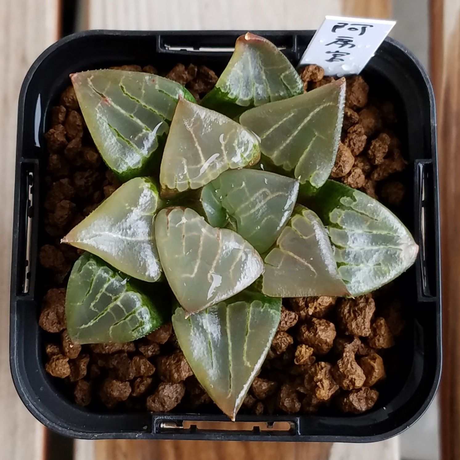 niハオルチア N水晶コンプトニアーナ×乱舞(酒井スーパーレンズコンプト実生特選)実生カキ仔 多肉植物 カクタスニシさん苗 ハオルチア 0904-86 現品販売 7.5cmポット