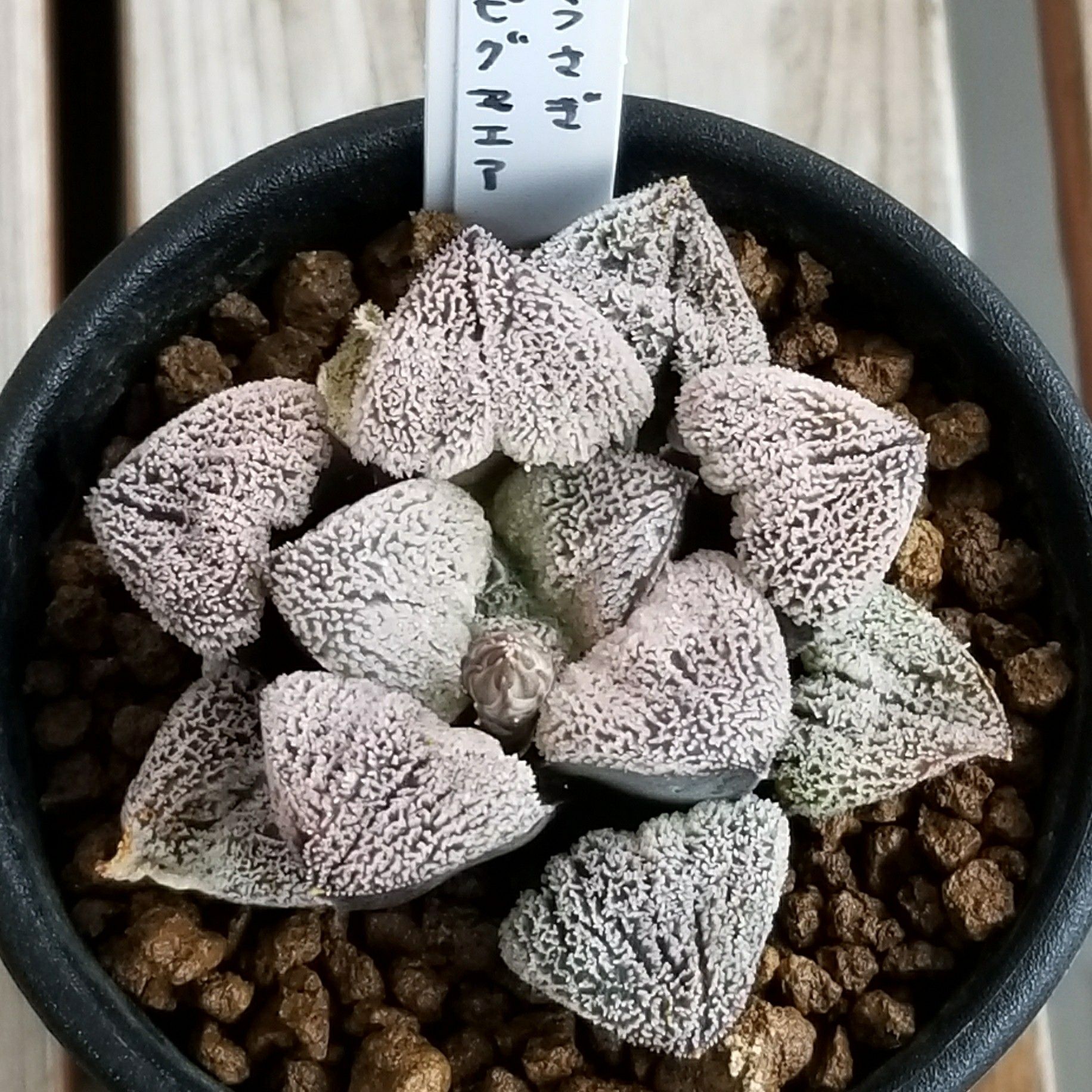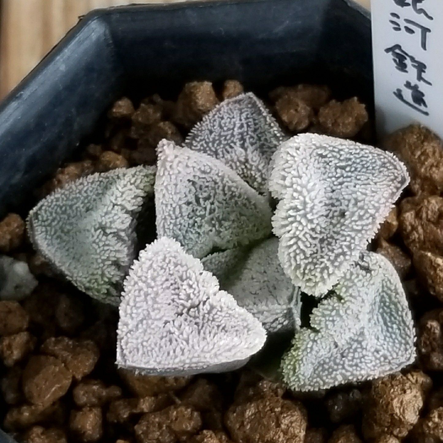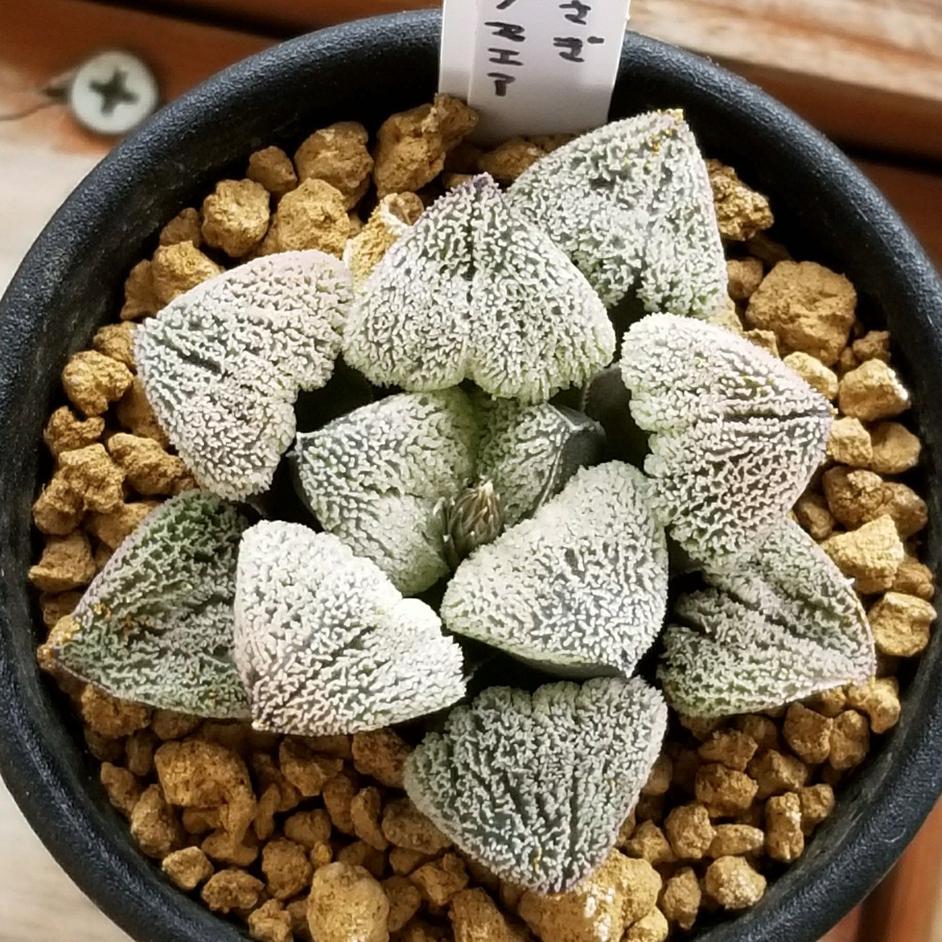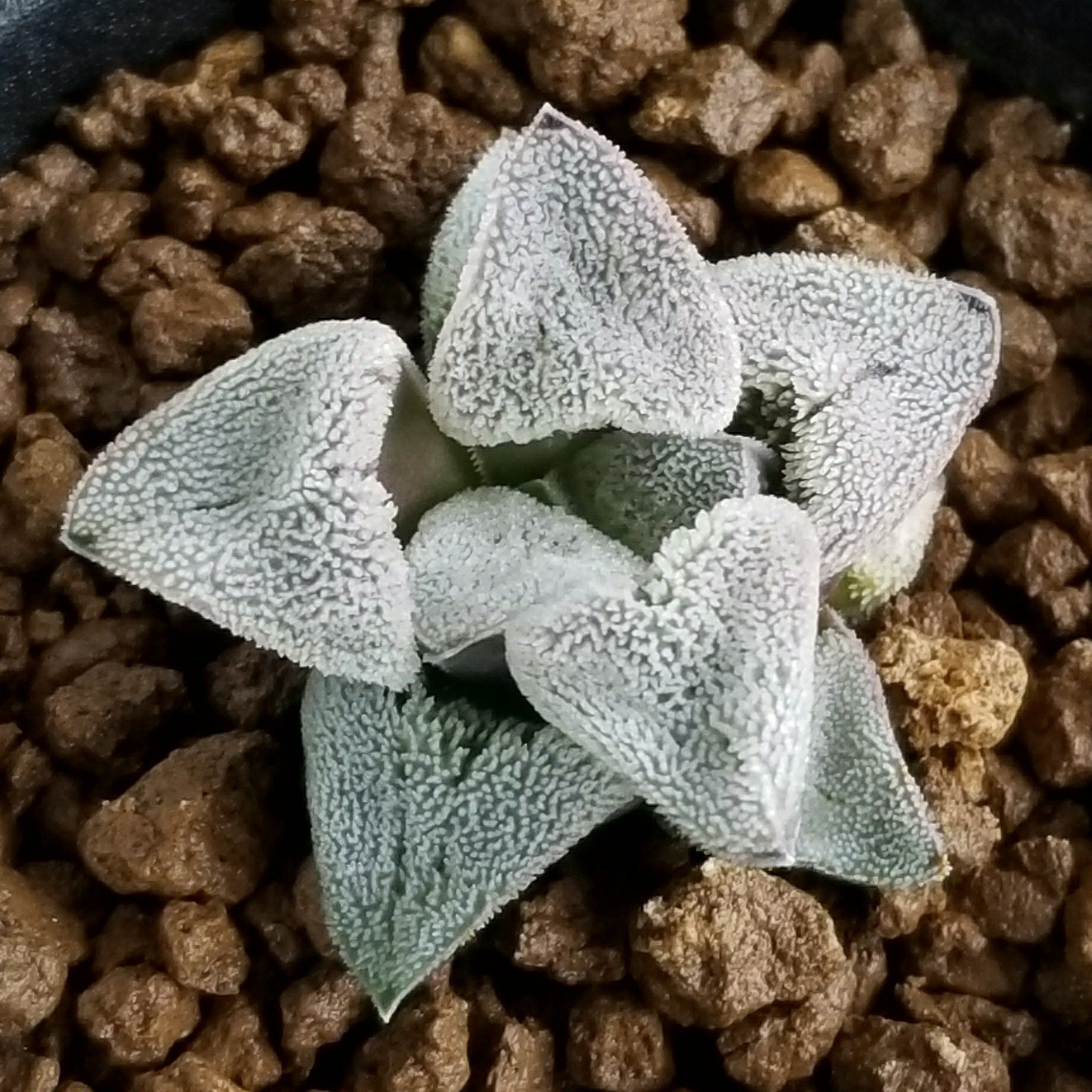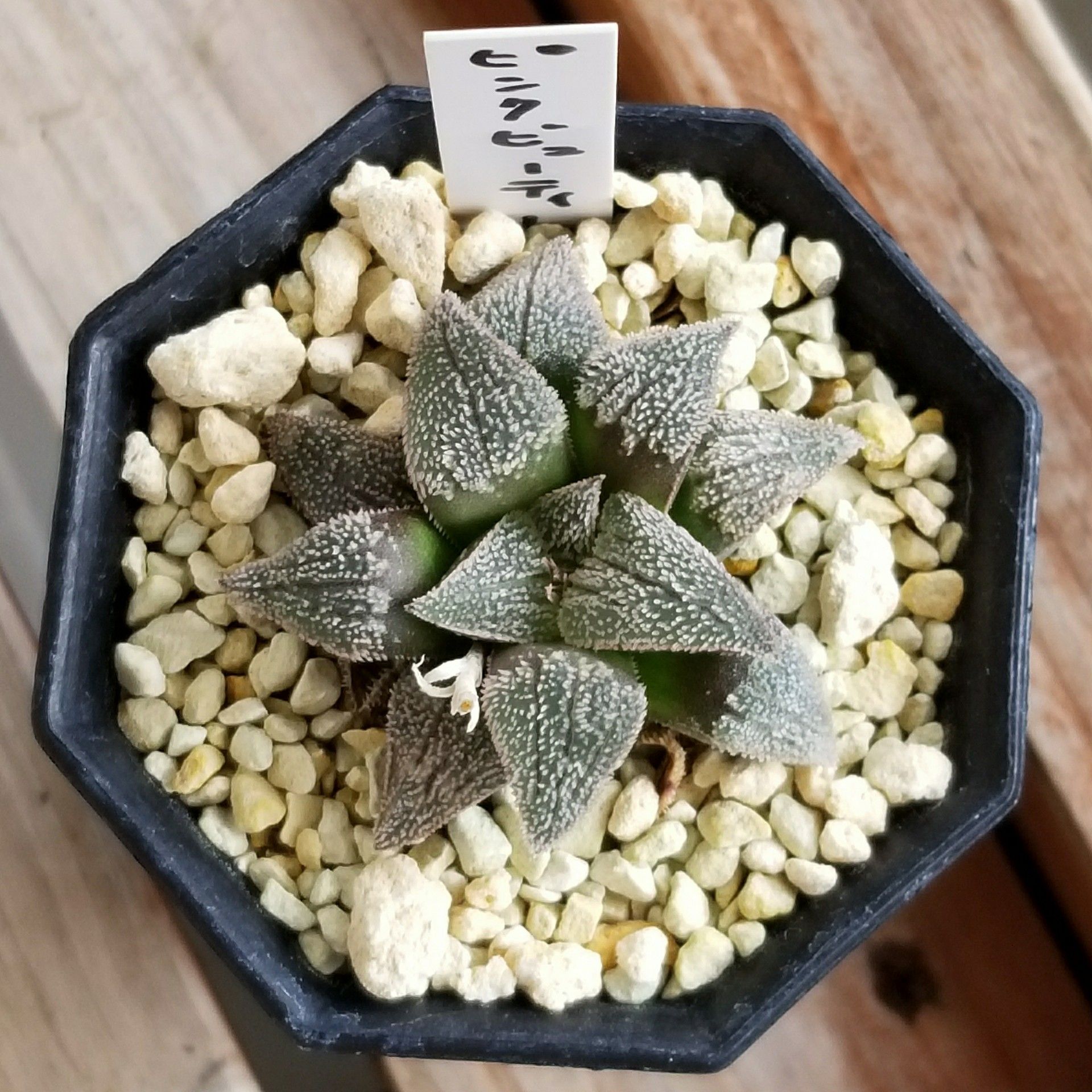 niハオルチア ビロード(特ケバピグ×白青城)×白銀堀川(白銀ピクタ×堀川ピグマエアHPG1)実生苗 多肉植物 カクタスニシさん苗 ハオルチア 0904-97 現品販売 7.5cmポット